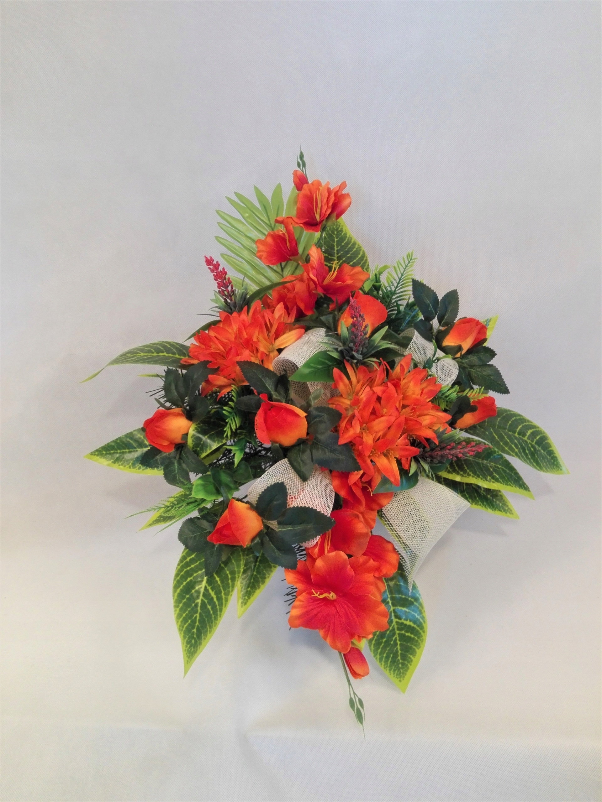 Композиція виготовлена з штучні квіти, все заповнене листям та аксесуарами