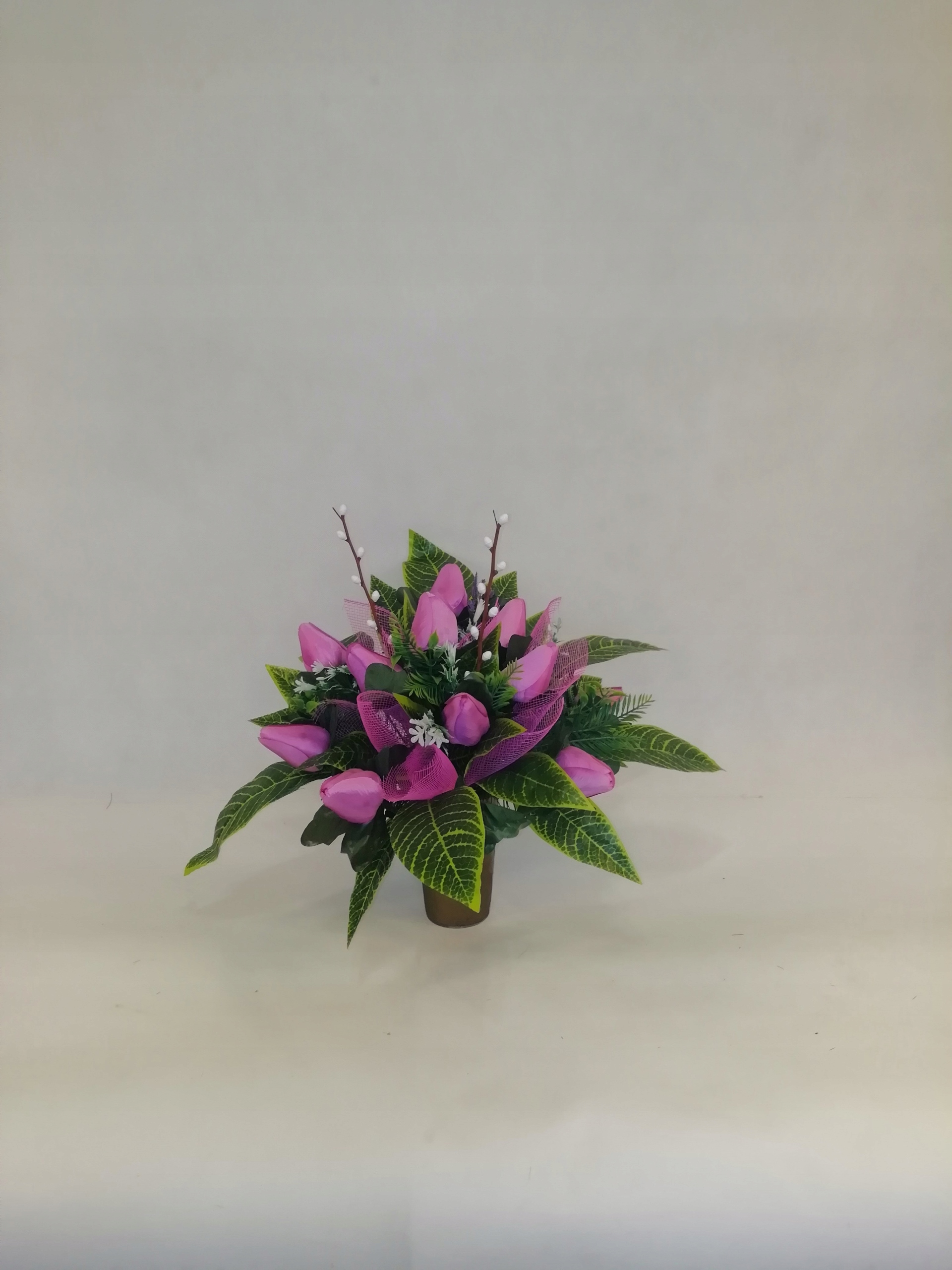 Композиція виготовлена з штучні квіти, все заповнене листям та аксесуарами