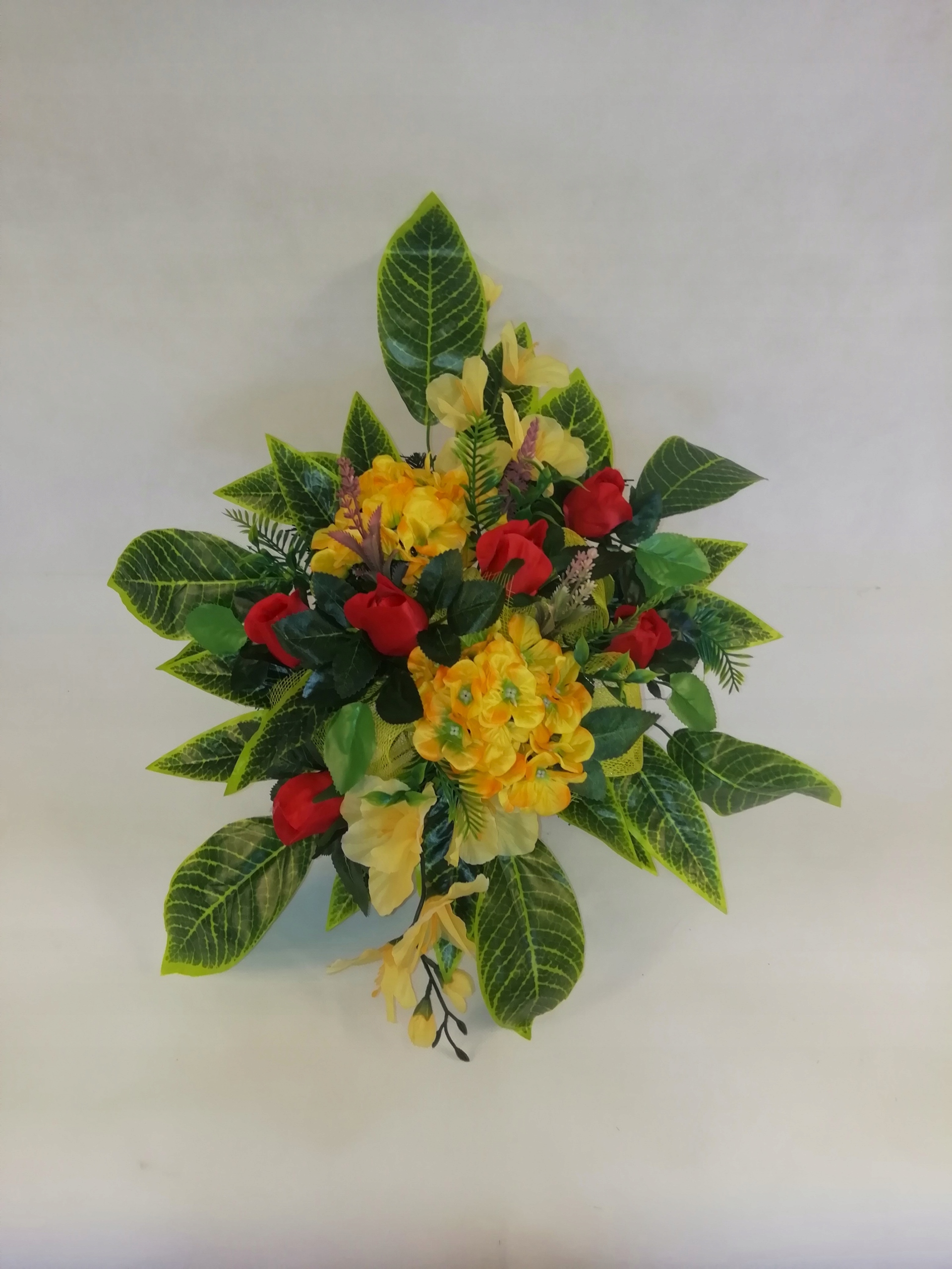 Композиція виготовлена з штучні квіти, все заповнене листям та аксесуарами