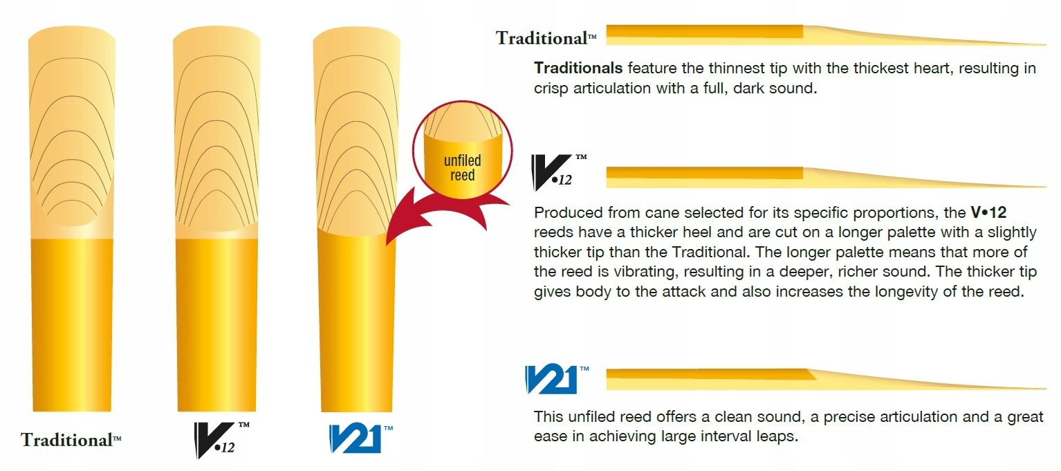 класична синя серія складається з усього перехрестя -розрізку очерету: з 1 до 5. Завдяки найтоншій структурі вони дозволяють отримати повний темний звук.