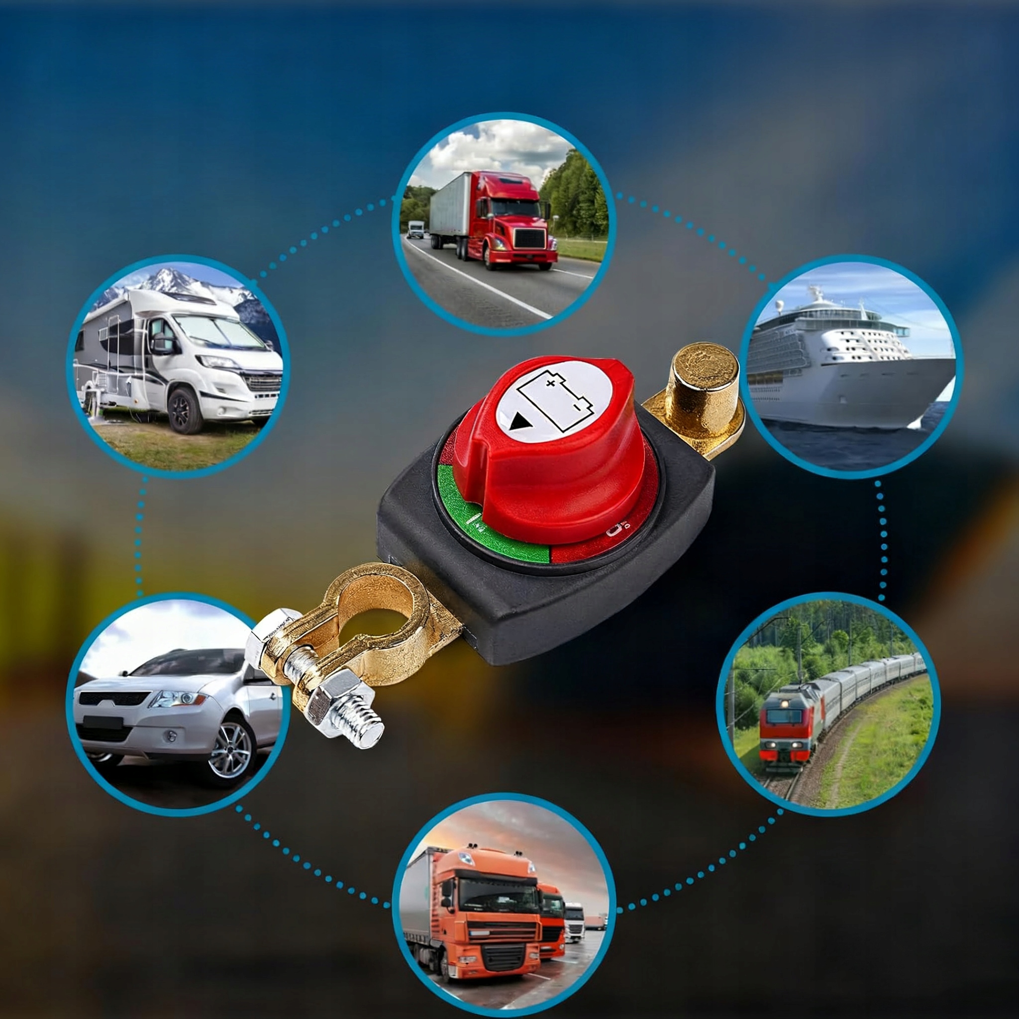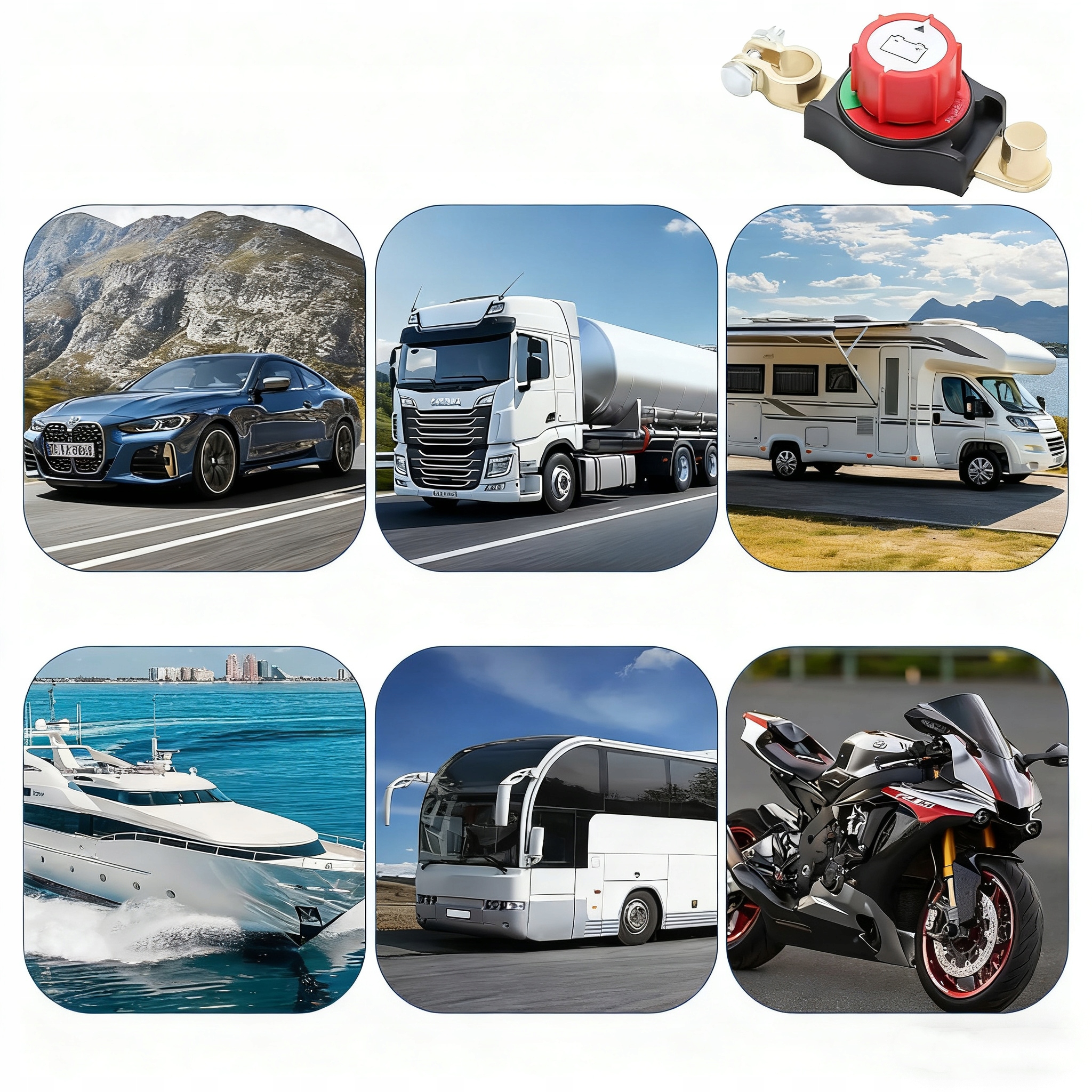 Цей вимикач акумулятора підходить для різноманітних сценаріївне лише для автомобілів, але й для фургонів, човнів тощо. Незалежно від того, збираєтеся ви в тривалу подорож автомобілем, кемпінг чи подорож на човні, цей перемикач забезпечує надійне керування живленням і рішення ізоляції, щоб акумулятор не розряджався через тривалу бездіяльність.