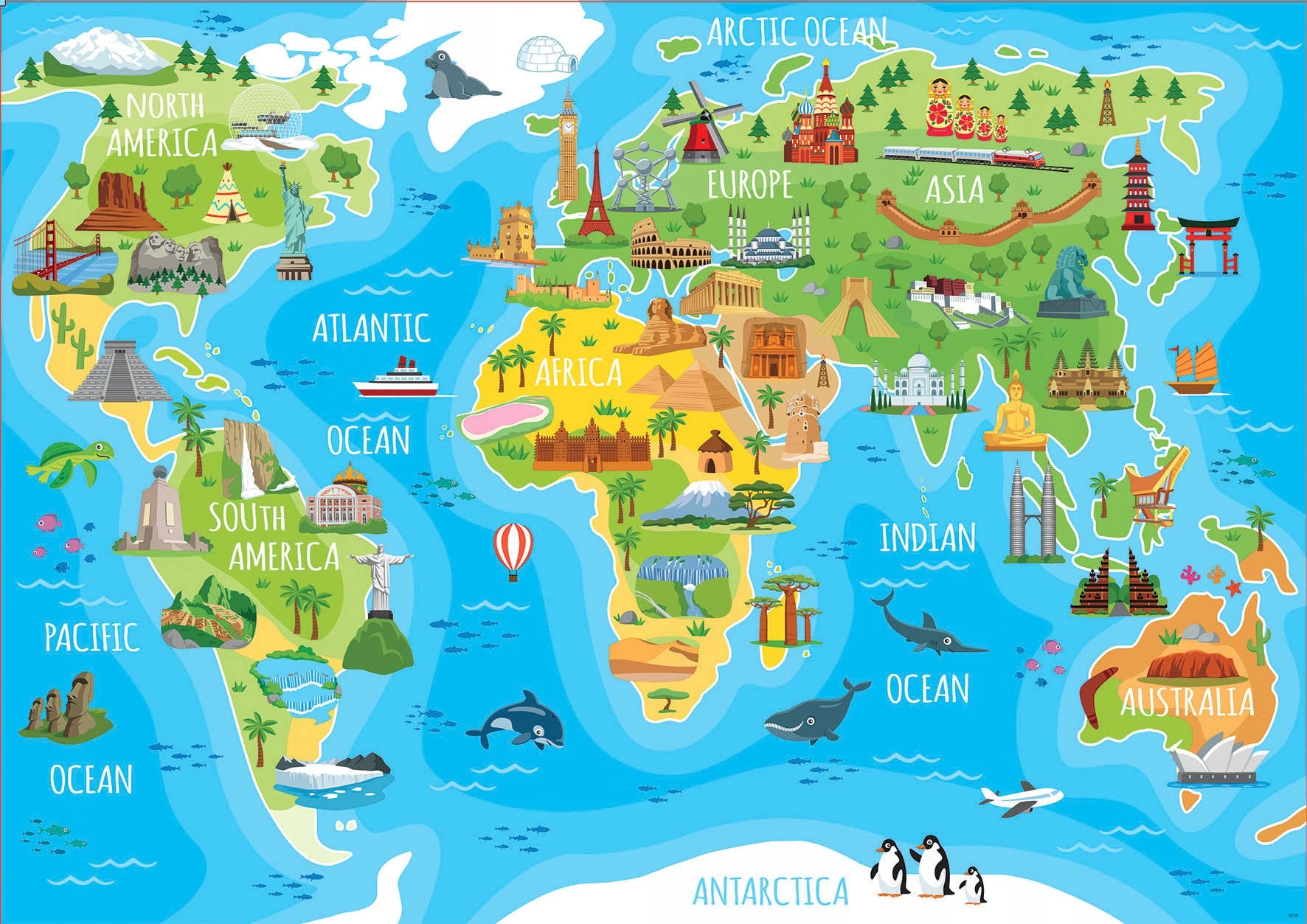 Пазл 150 елементів Карта світу для дітей (Туристичні пам'ятки)