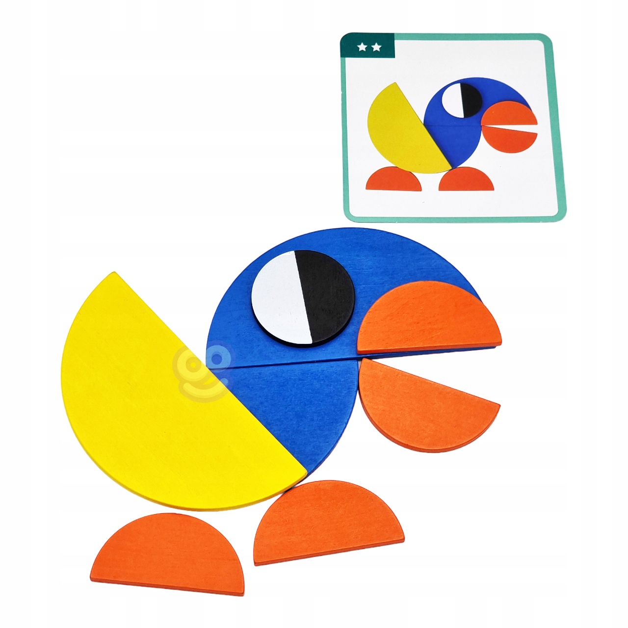 Дерев'яна головоломка Монтессорі від бренду WOOPIE із серії GREEN - це навчальна гра для творчості іуява. Набір складається з 55 елементів: 20 двосторонніх карток з 40 візерунками різної складності (3 рівня) і 35 b > блоки. У цій грі діти намагаються відтворити зображення/композиціюз картки, використовуючи блоки різної форми та кольору, наприклад, зображення птаха чи метелика. Розваги можна урізноманітнити грою в запам'ятовування і відтворення малюнком по пам'яті. Дитина також може придумати власну фігуру/фішку - єдине обмеження - творчість і уява. Елементи можуть додатково служити допомогою увивченні формікольорів. Іграшка розвиває ручну майстерність, логічне мислення, уяву та креативність, концентрацію та b>запам'ятовування.