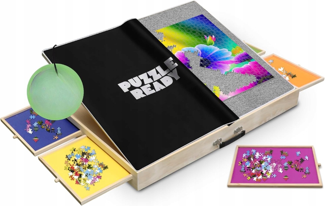 - 4 drawers for sorting puzzles - extended on both sides of the board, allow you to store individual elements by colors or shapes