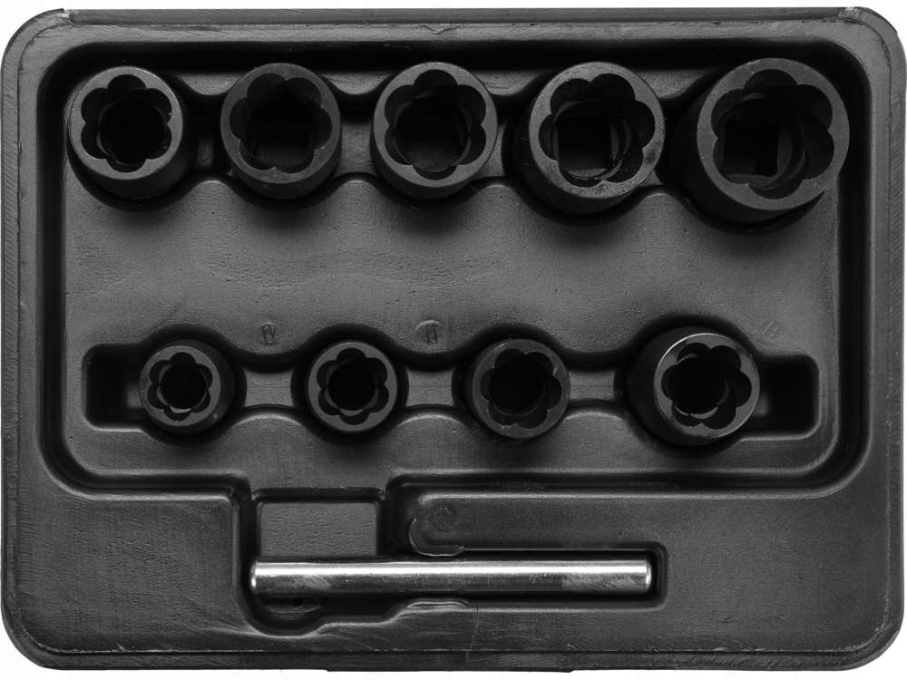 Гнізда для пошкоджених, оброблених гвинтів і гайок розмірів 10, 11, 12, 13, 14, 15, 16, 17 і 19 мм мають спеціальну форму, що дозволяє заклинювати пошкоджений гвинт або гайку, завдяки чому пошкоджена частина відкручується.