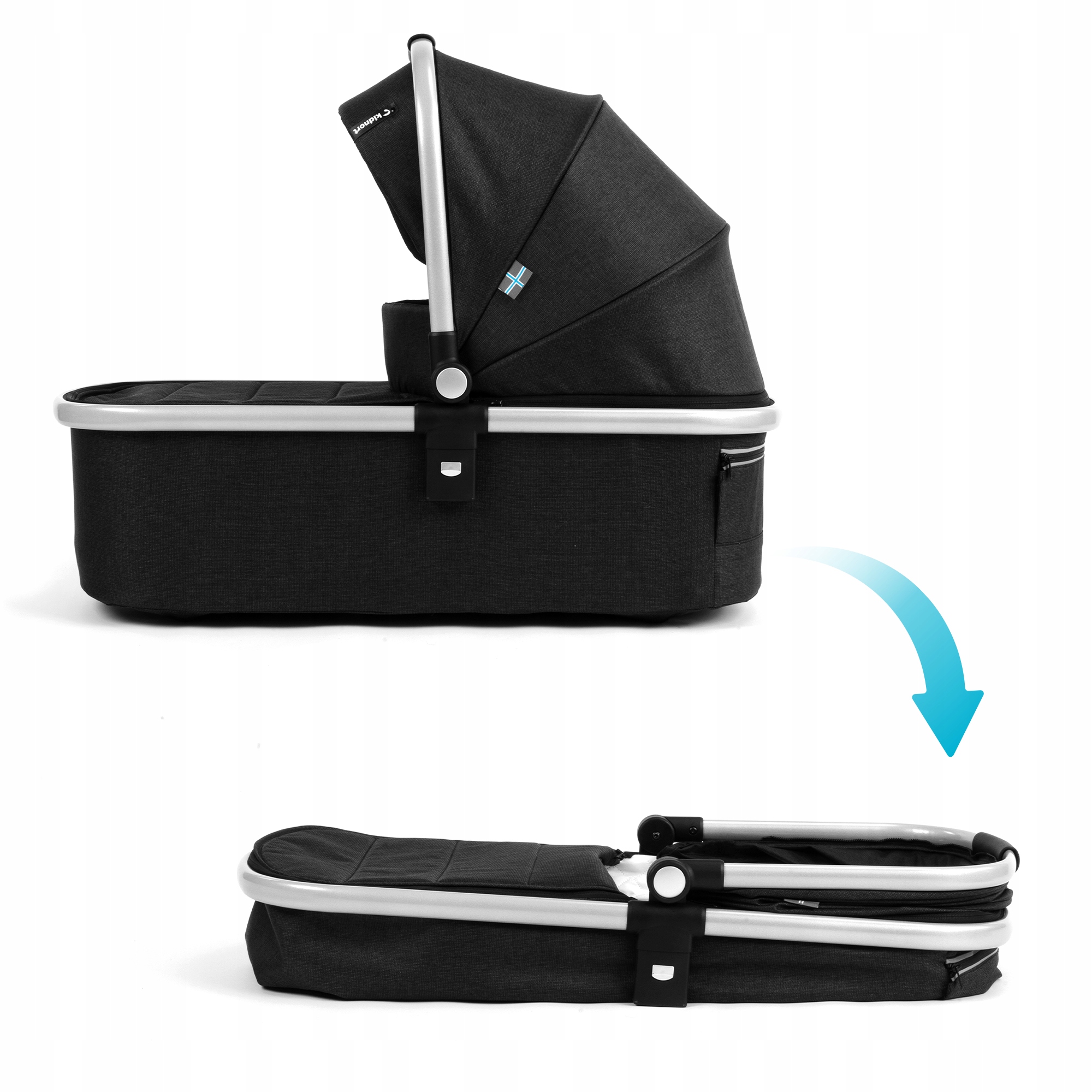 Практичний дизайн гондоли дозволяє швидко та легко скласти його. Це рішення значно полегшує зберігання та транспортування. Уся переносна гондола в складеному вигляді займає мінімум місця, що робить її ідеальною для подорожей і зберігання вдома. Це ідеальне рішення для батьків, які цінують мобільність і функціональність. Гондолу можна скласти кількома рухами, не вимагає застосування сили чи інструментів.