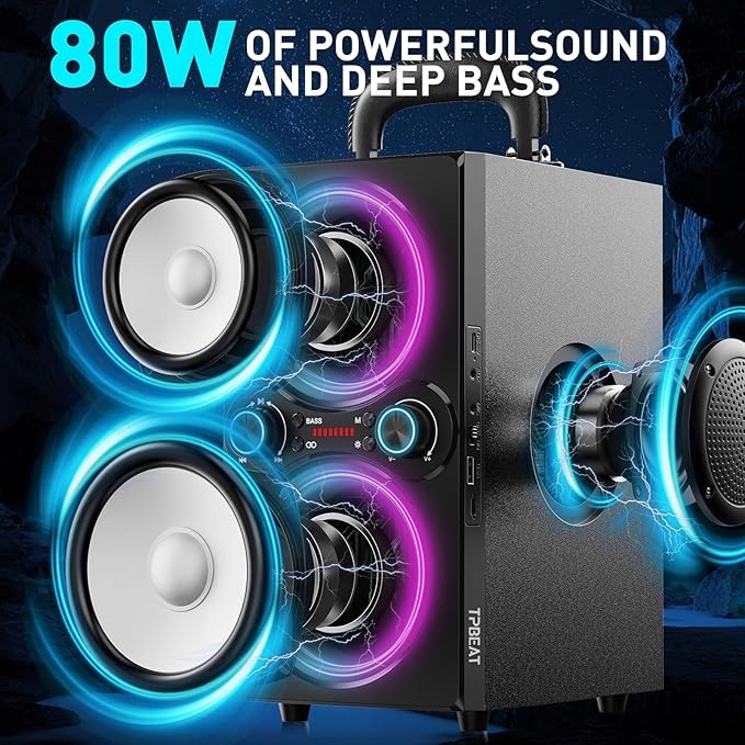 GŁOŚNIK BLUETOOTH STEREO 80W BSZHI DUŻY GŁOŚNY LED SUBWOOFER RADIO FM PILOT