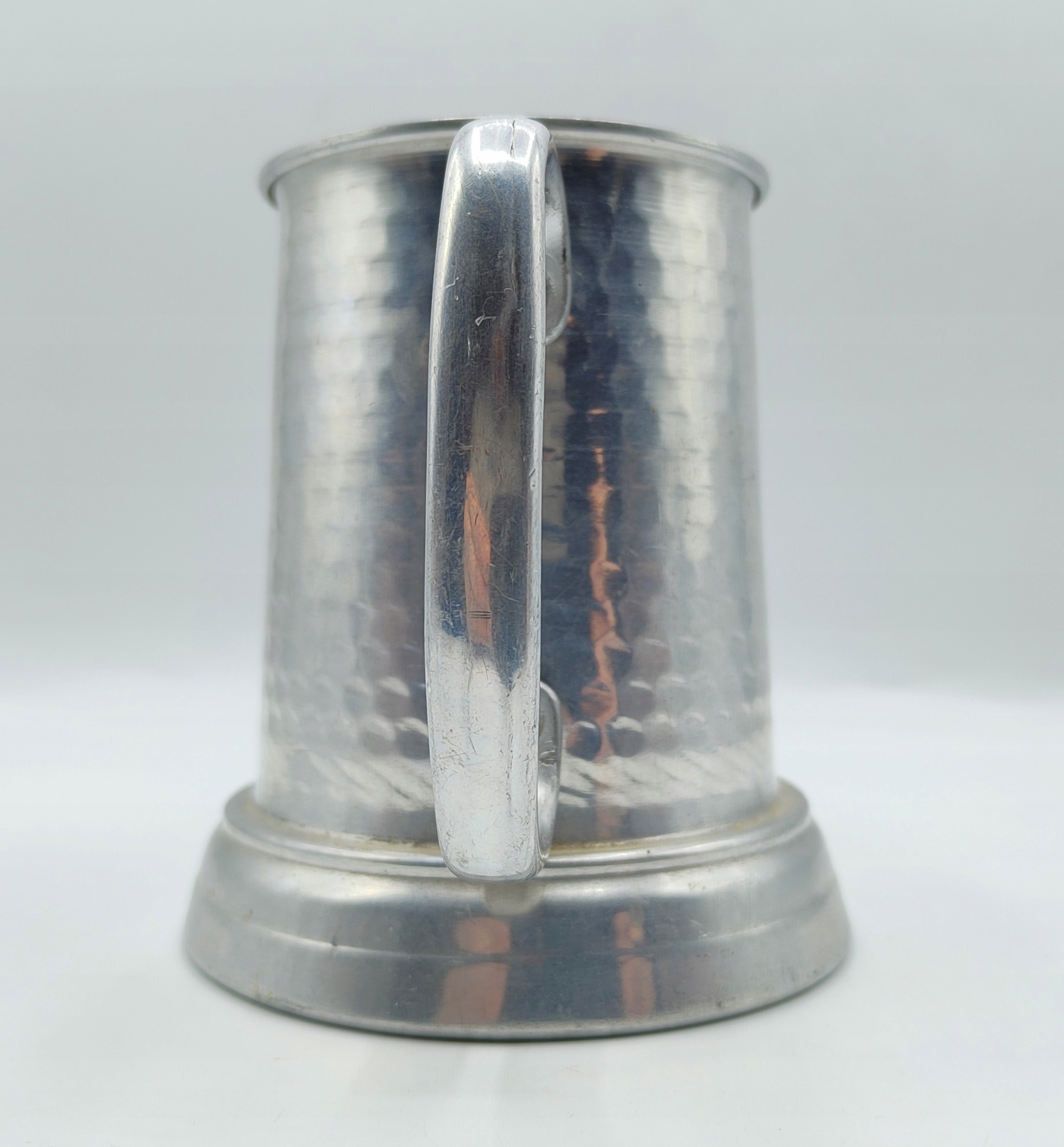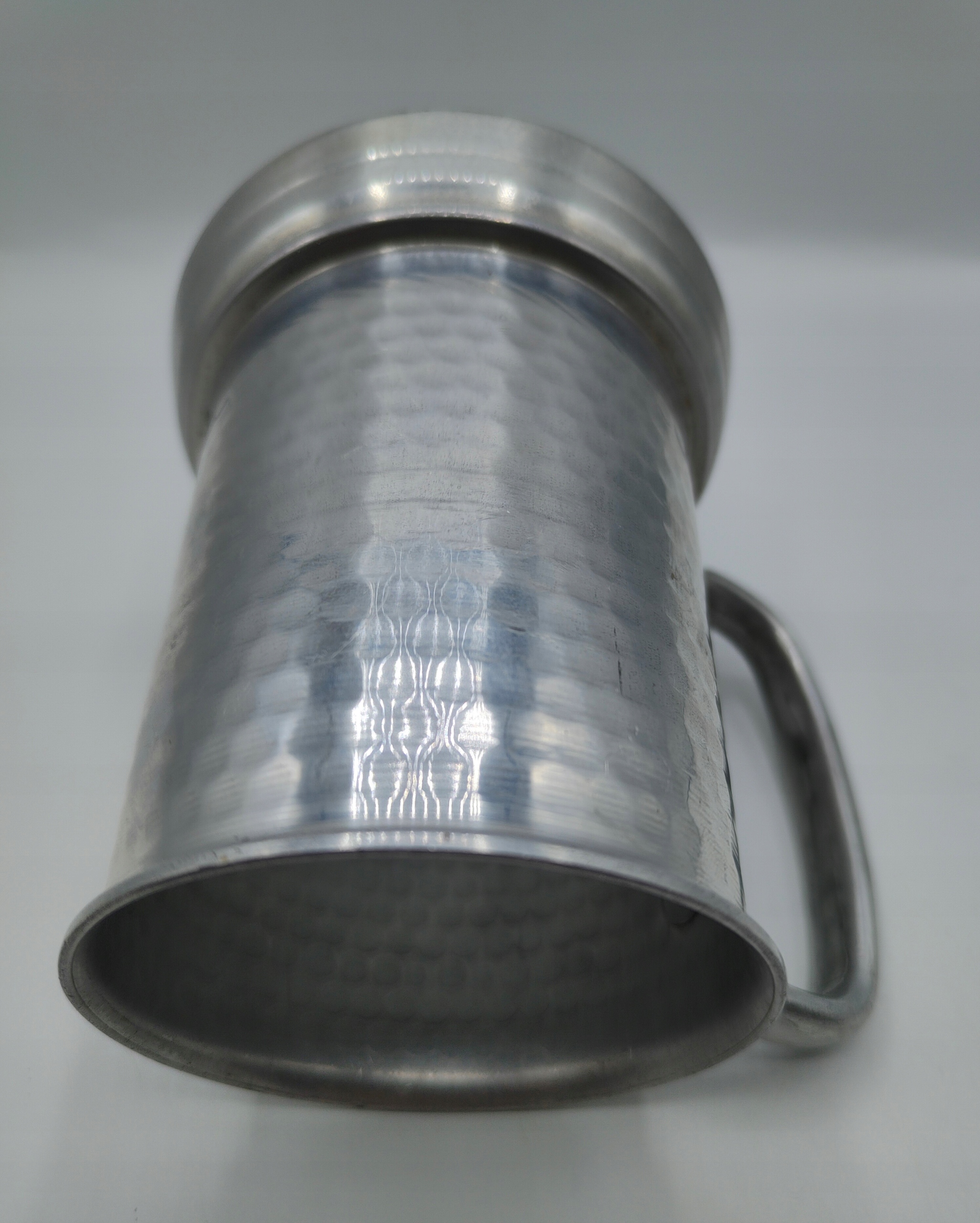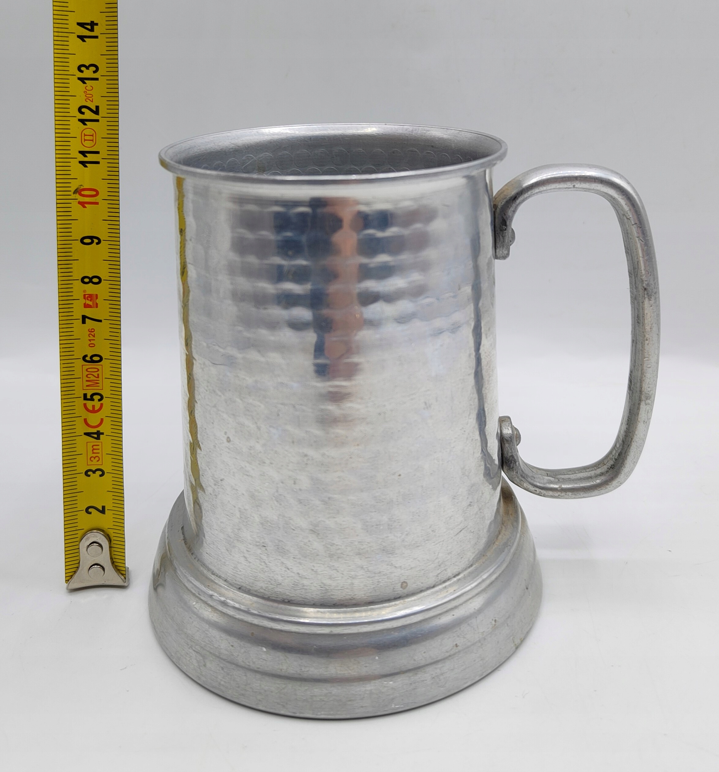 Алюмінієва чашка. Старий предмет. Є сліди користування, подекуди дрібні подряпини - але тріщин і зазубрин немає, нічого не ремонтували, просто стара річ, звичайно, не протікає і з неї можна пити. Дуже гарне скляне дно - не подряпано. Висота 11,5 см, ширина з ручкою 13 см, вага близько 140 грам, місткість 400 мл. Стара річ, стан як на фото, старовинна, колекційна. Рекомендую.