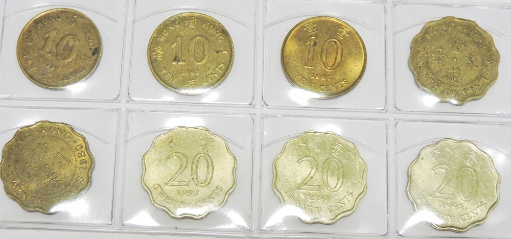 ГОНКОНГ Набір із 8 монет 10 центів 1990 1992 1995 20 центів 1975 1980 1993 1997 1998
