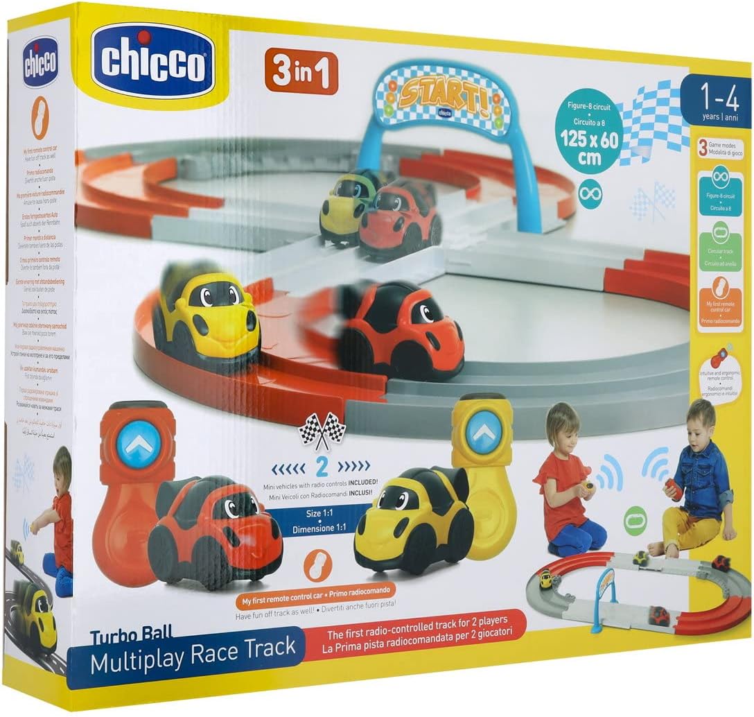 - Трек Chicco з лінійки Turbo Ball обладнаний двома автомобілями з дистанційним керуванням