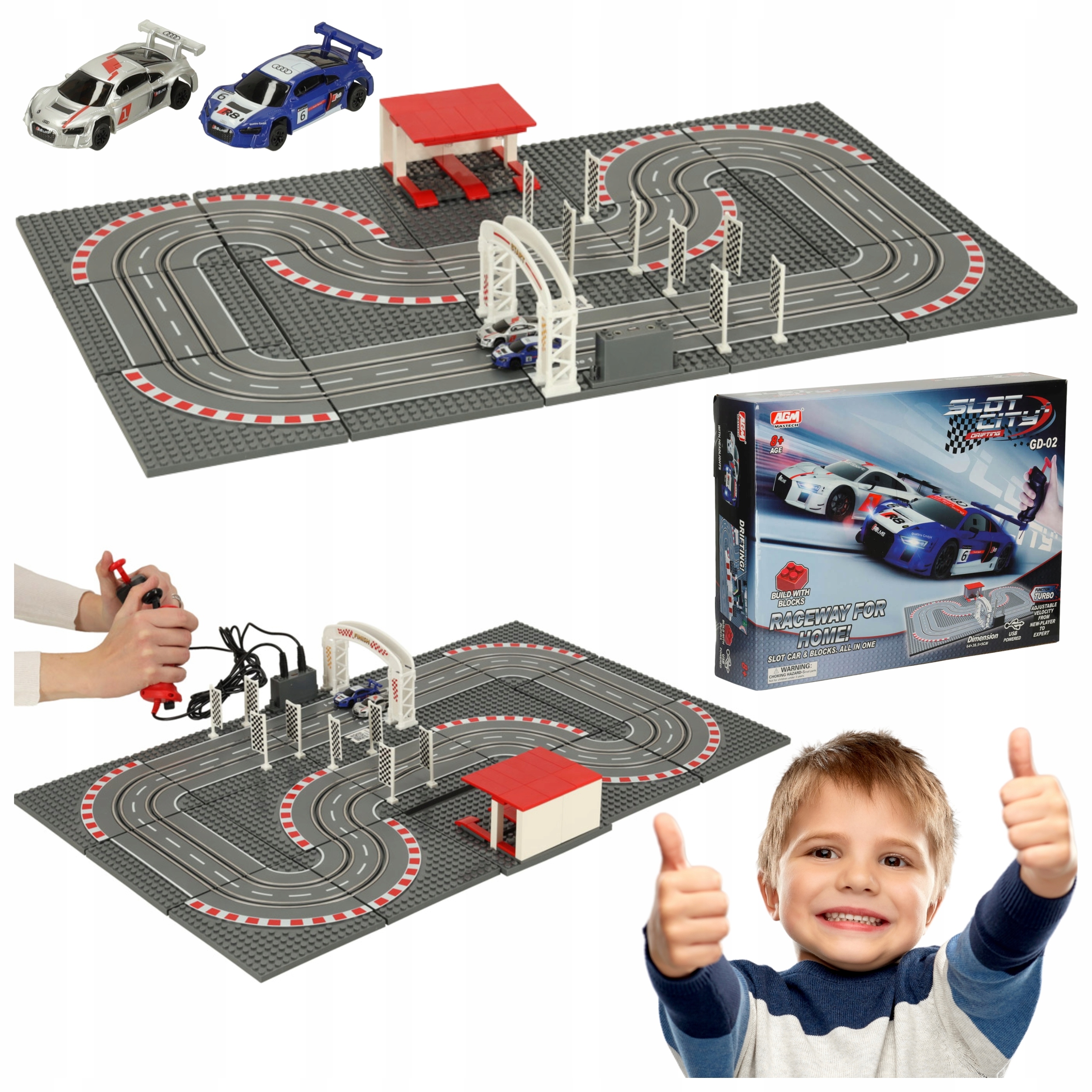 гоночний набір дозволяє повну персоналізацію маршруту. Завдяки прикріпленим стендам та елементам, такими як прості секції, звуження або згин, діти можуть побудувати різноманітні системи треку. Елементи легко встановити і можуть бути вільно організовані, що розвиває творчість та ручні здібності.