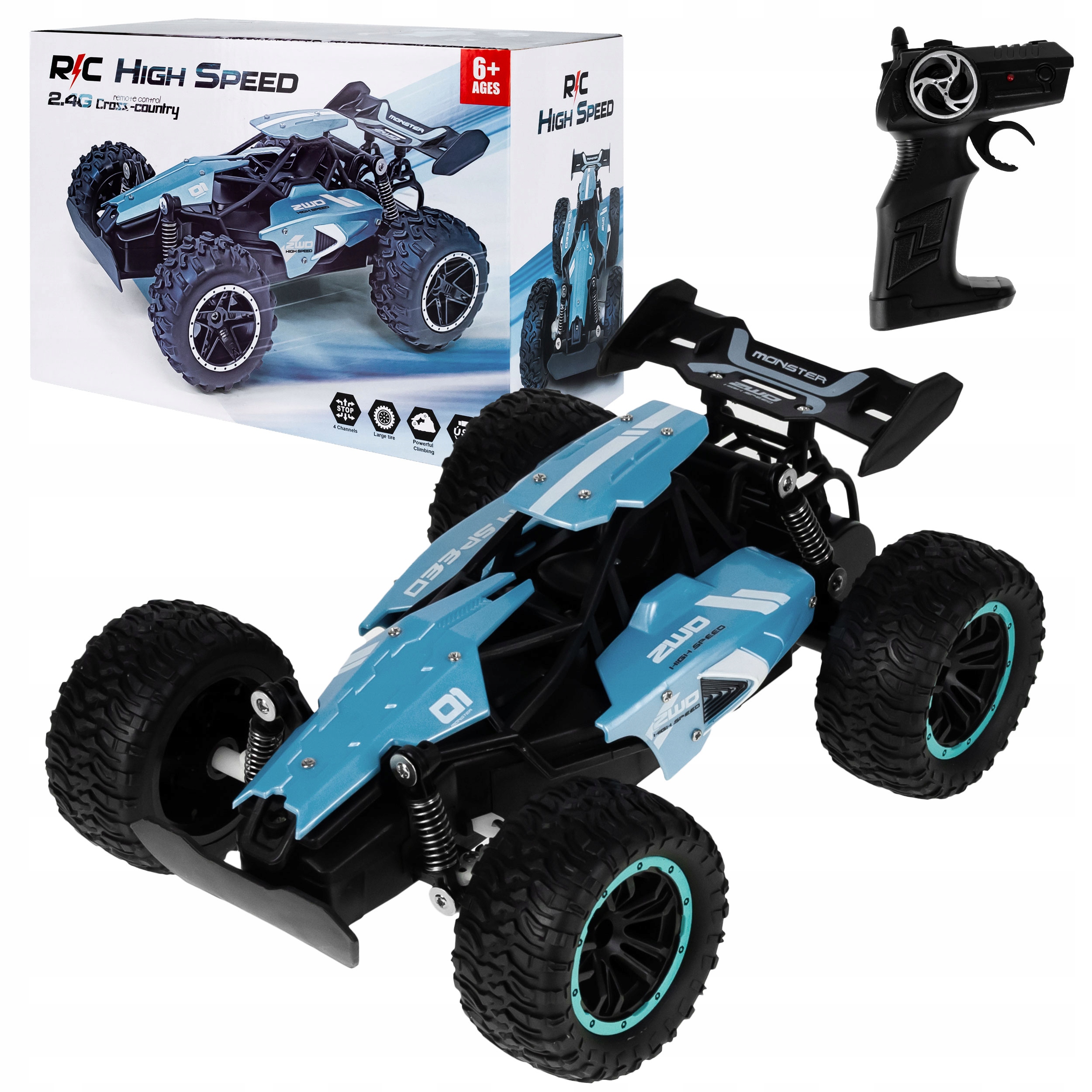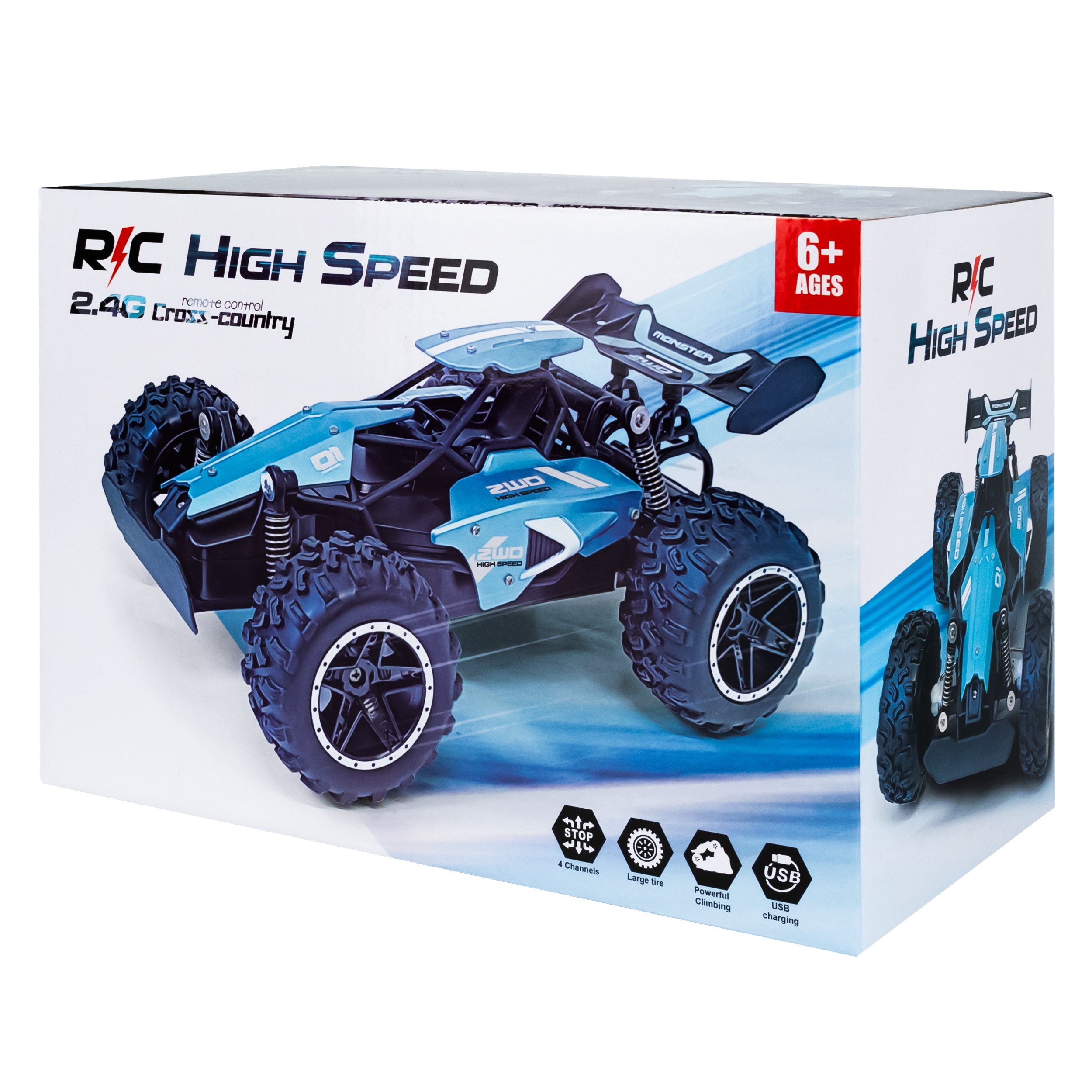 Автомобілем керують за допомогою інтуїтивно зрозумілого пульта дистанційного керування з частотою 2,4 ГГц. Пульт дистанційного керування дуже простий у користуванні, ним зможуть керувати навіть маленькі діти. З його допомогою автомобіль рухається вперед, назад і вбік. Його спритність і швидкість дозволяють виконувати дивовижні вражаючі маневри. Відчуйте себе справжнім гонщиком ;)