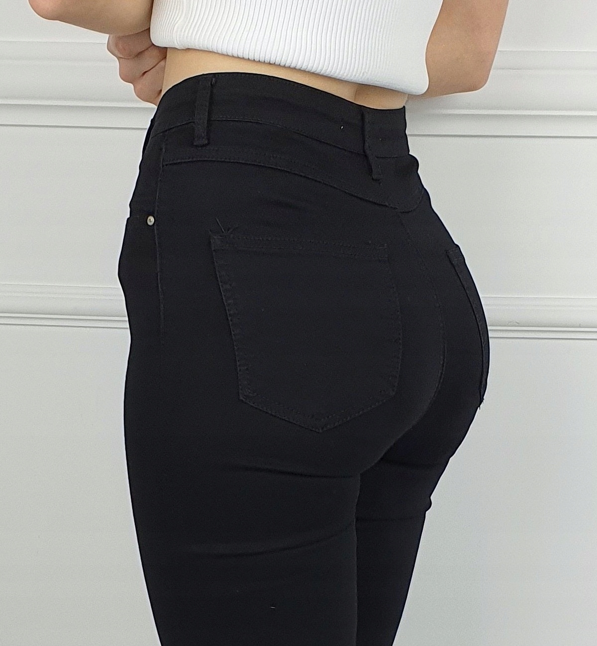 Чудові класичні штани чорного кольору, з високою талією. Чудово підходять для спортивного взуття, але також ідеально підходять для взуття на високих підборах, завдяки своїй універсальності вони підходять майже до будь-якого стилю. Гнучкий матеріал підкреслює жіночу фігуру. Штани приталені та стрейч. Підкресліть свої жіночі форми! Зробіть свій повсякденний образ унікальним. Штани мають кишені з обох боків.