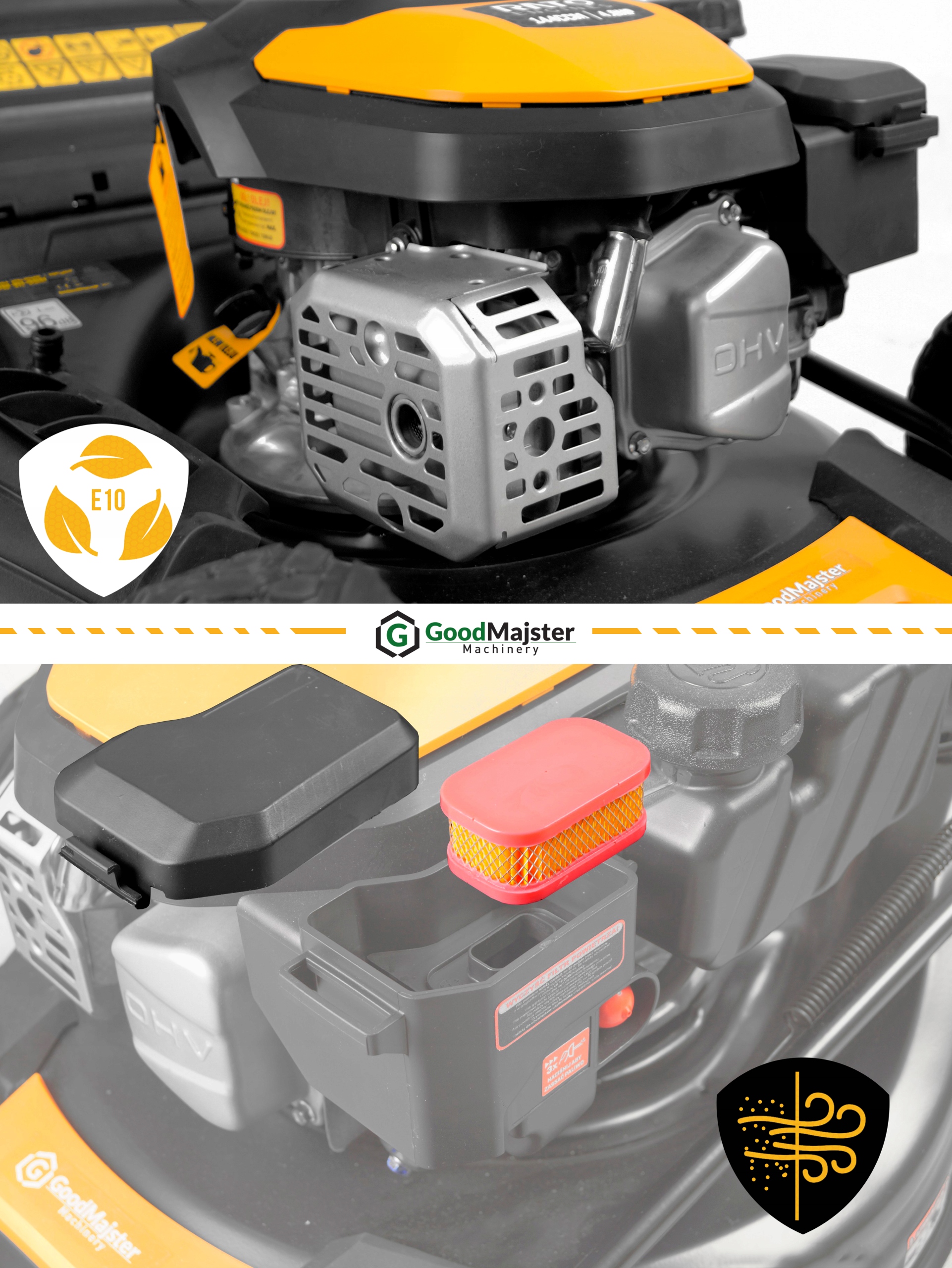 Goodmajster Machinery як повністю польська марка ✅ піклується про безпеку Отже, косил має наклейки ✅ попередження, посібник користувача повністю в польській сумніви. Сервіс і запчастини також в Польщі!