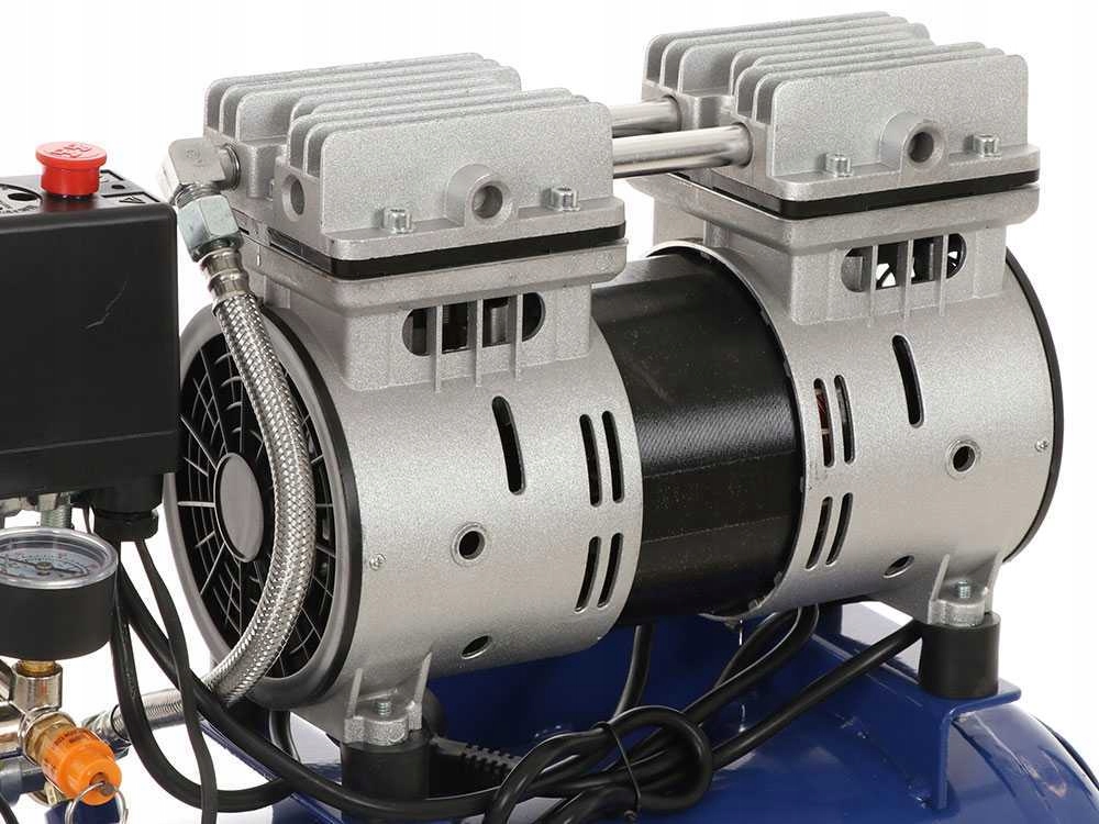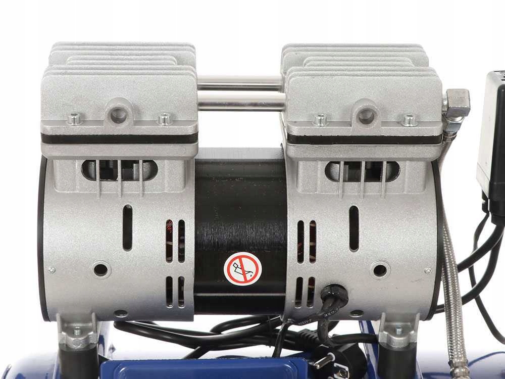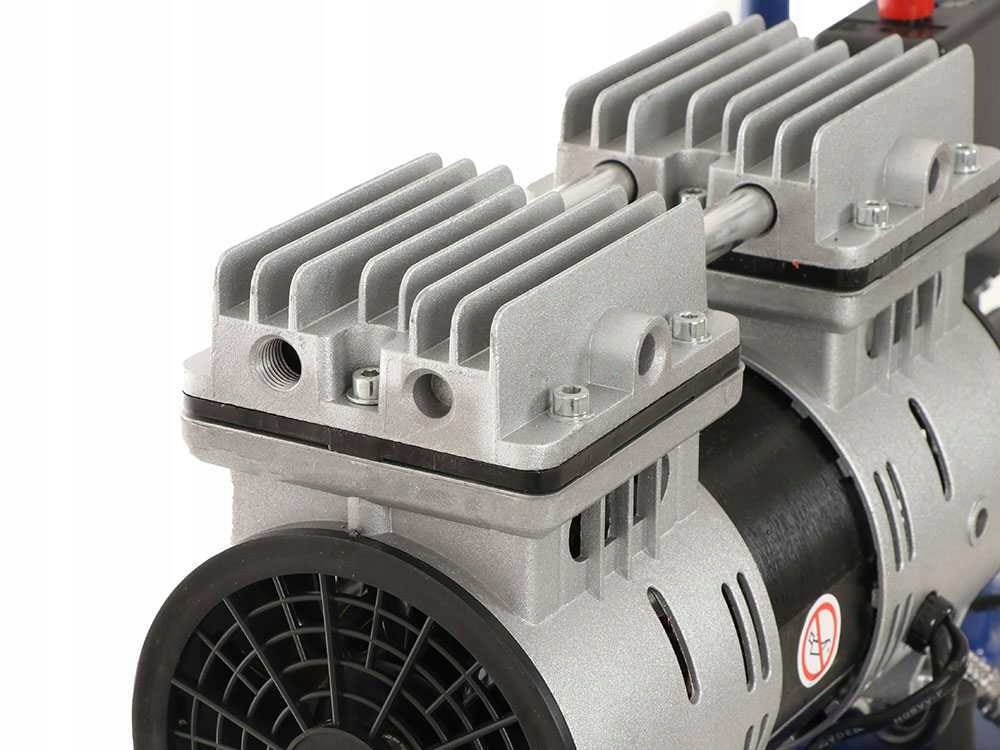 Він оснащений 2 безшумними насосними головками з потужністю 1 HP , має потужність всмоктування 150 літрів повітря за хвилину, може створювати максимальний тиск 8 бар; добре продумана конструкція компресора дозволяє для роботи без мастила (без масла).