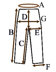 E - ширина ніг трохи нижче промежини - 25 см.