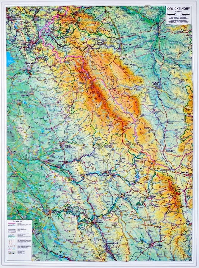 Пластикова карта гір Орліксі та Байстзикі за шкалою 1: 75 000 чеських видавничих будинків Kartografie HP.