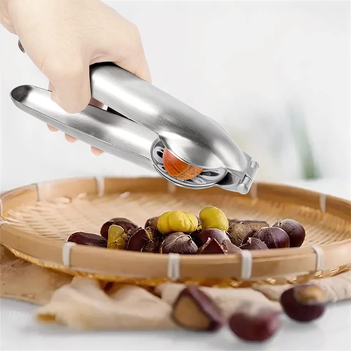 Каштанорізка має гладку поверхню та неслизьку ручку, що робить її зручною та практичною у використанні, а також запобігає травмам рук під час чищення горіхів. Вишукана майстерність, цільна конструкція, стильний зовнішній вигляд, комфорт і вигнутий товстий матеріал.