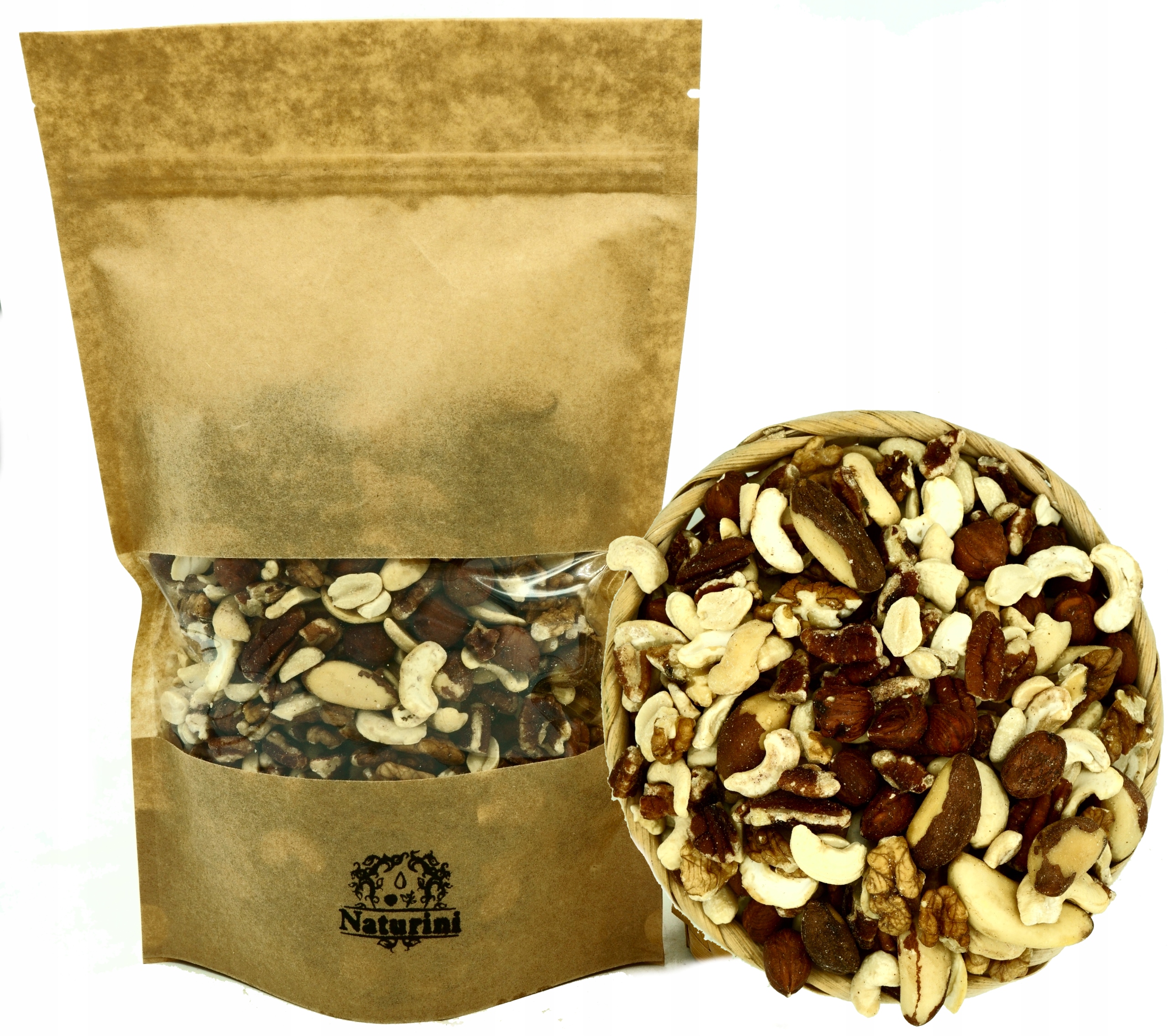 Інгредієнти: смажений арахіс (30%), волоські горіхи (25%), половинки кешью (20%) , горіхи пекан (15%), сирі фісташки (10%)