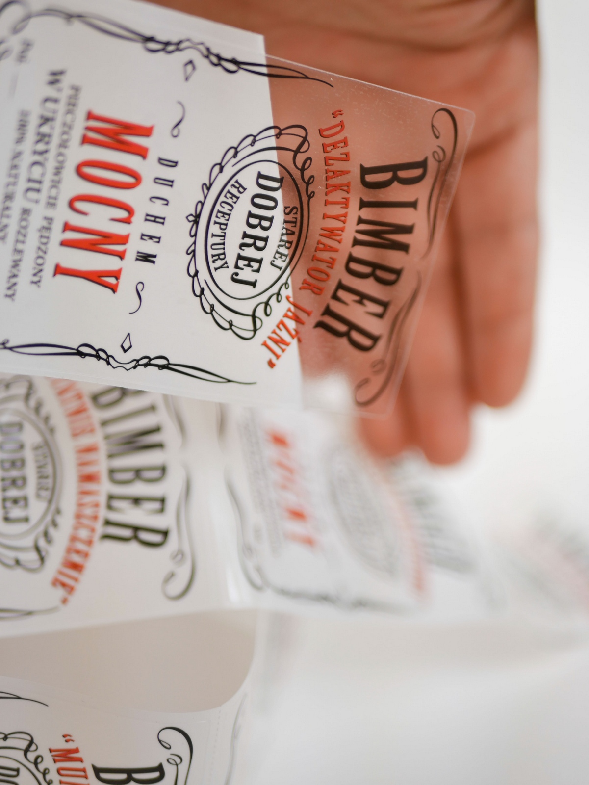- Етикетки друкуються на прозорій фользі та міцному клеї.