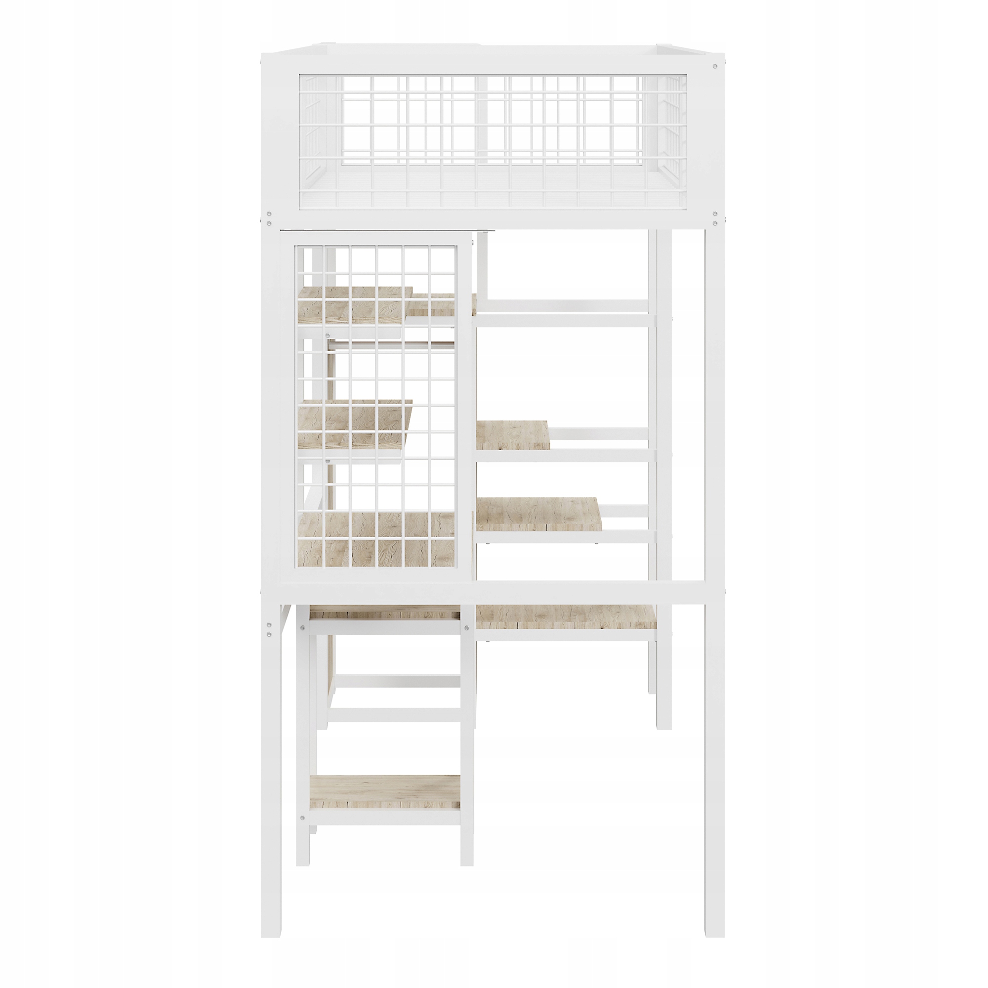 горищне ліжко 90x200 із захисною драбиною, дитячим ліжком з гардеробом із залізною рамкою та білим комп'ютерним столом