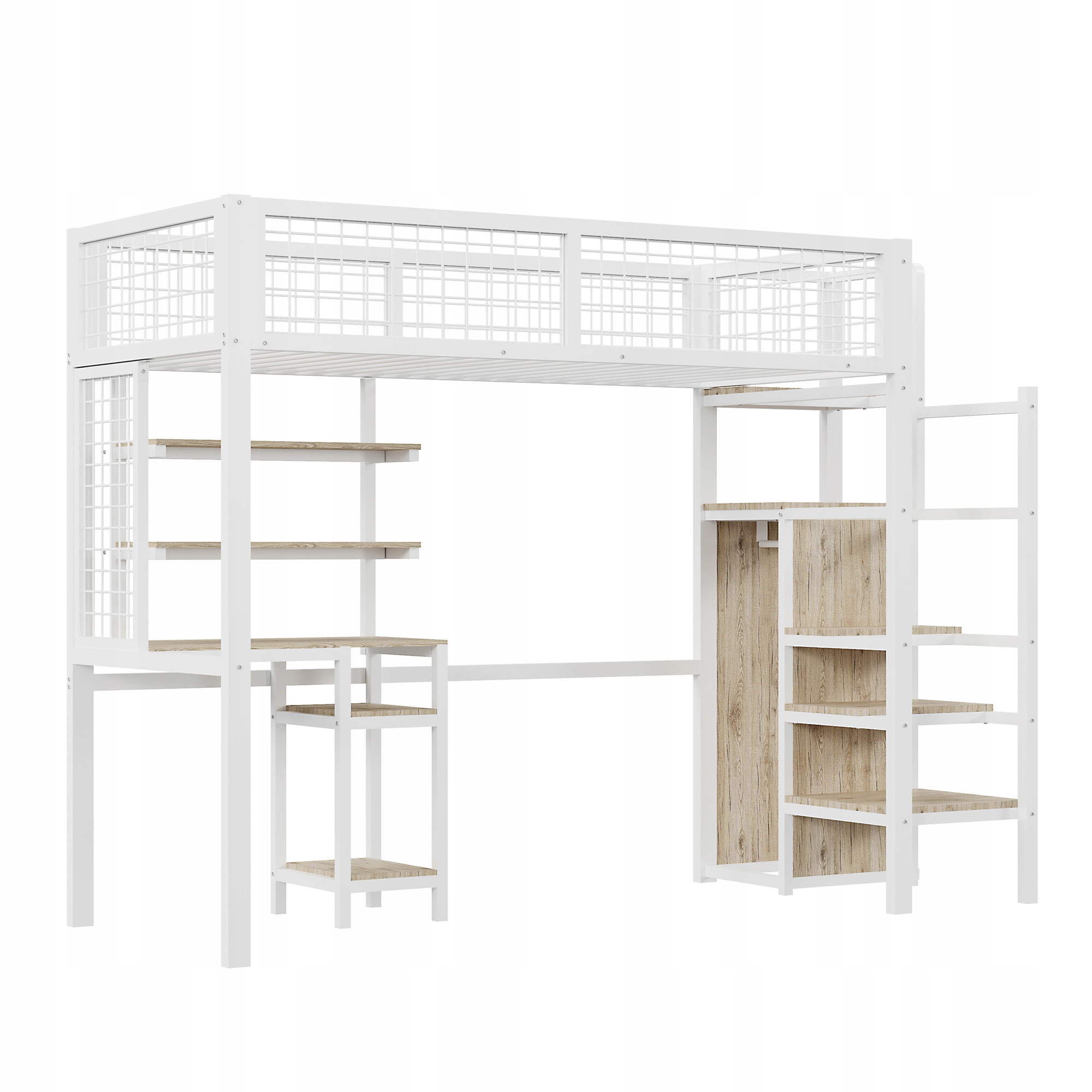 Горищне ліжко 90x200 Залізний ліжко Дитячий комп'ютерний стіл з гардеробом
