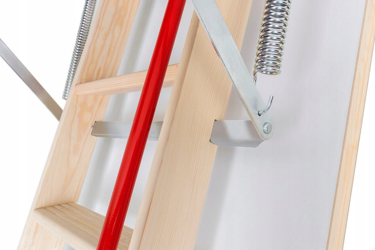 Запатентований кутовий пружинний фіксатор робить жорсткішим коробку і запобігає зміні довжини її діагоналей. Завдяки цьому короб не деформується, що забезпечує правильну і довговічну експлуатацію сходів. Сходові петлі, які використовуються в секційних сходах, підвищують жорсткість рухомих з'єднань.