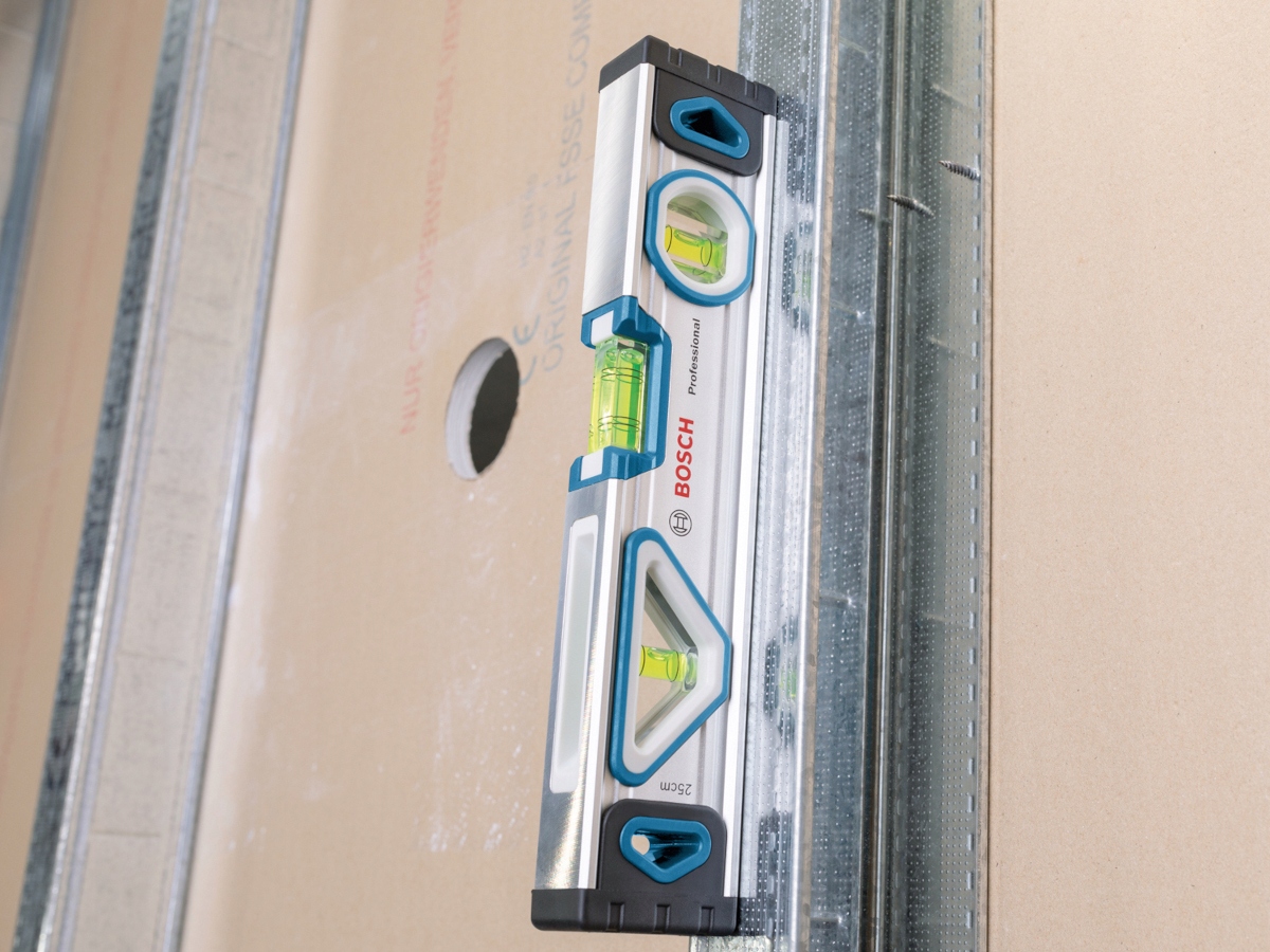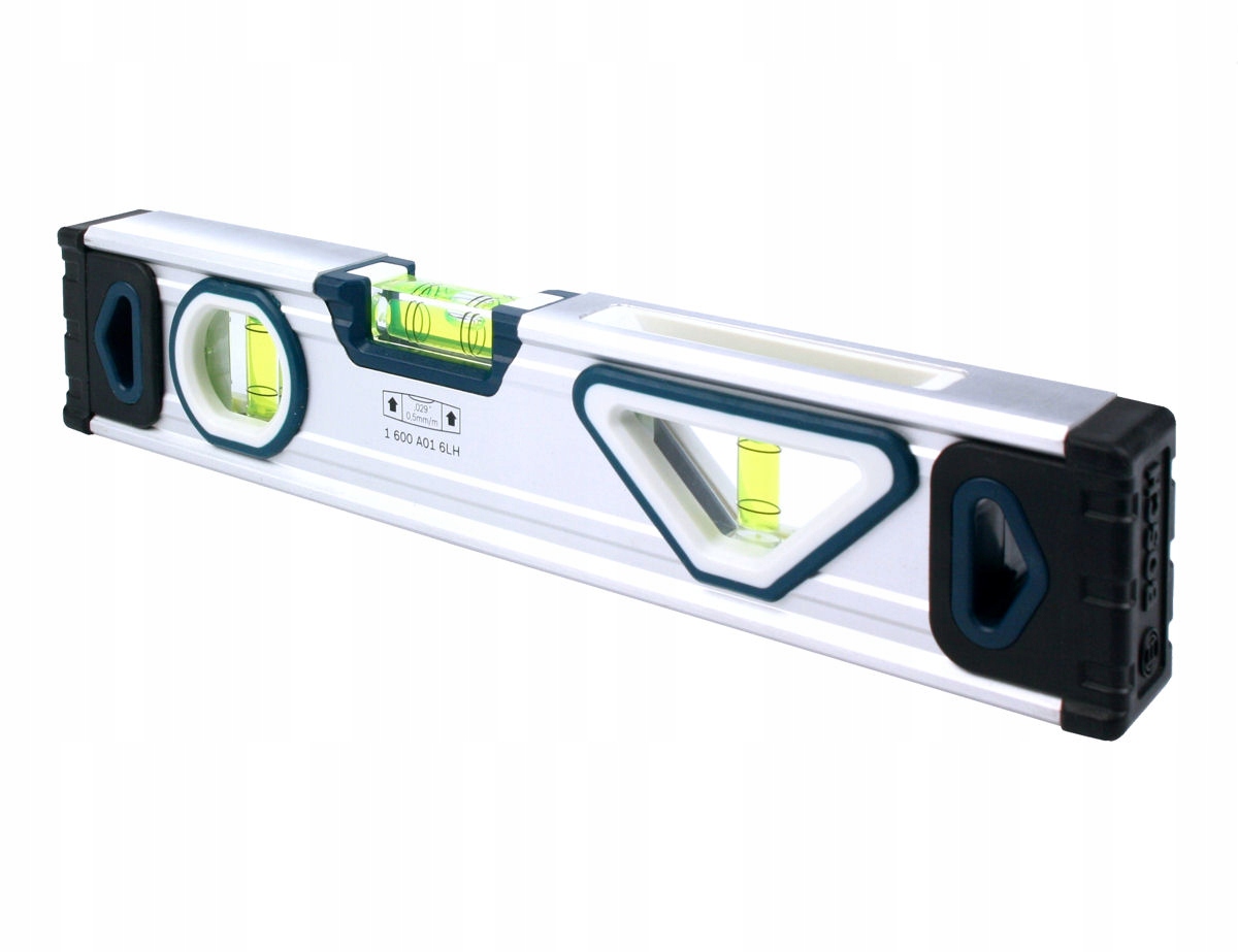 Рівень BOSCH — багатофункціональний традиційний рівень для всіх робіт з горизонтального нівелювання у тісних і важкодоступних місцях — удома та поза домом. Три потужні магніти, вбудовані в основу, дозволяють використовувати його на закруглених металевих поверхнях, таких як труби або труби.