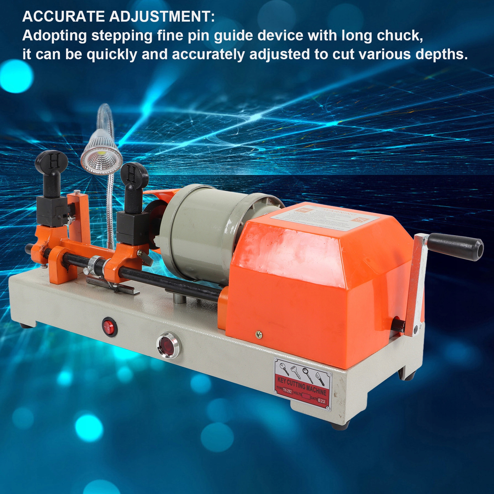 1. Правильне регулювання: Завдяки поступовому пристрою провідних невеликих кроків з довгою ручкою їх можна швидко та ретельно відрегулювати, щоб вирізати на різних глибинах. 5 типів дублювання: Ця горизонтальна копія може копіювати порожні, хвилясті, циліндричні та з намистинами, що робить її комфортною та практичною. Легка експлуатація: Копіювальник використовує канал за допомогою ручного колеса, щоб забезпечити навіть різання і може керувати швидкістю самостійно, а операція проста. Горизонтальна конструкція: Машина для дублювання замка має горизонтальну структуру, забезпечуючи хорошу стабільність роботи та полегшення більш плавного копіювання. Висока продуктивність: Ця машина для дублювання може витримати 15-30 хвилин і підходить для професіоналів, значно покращуючи ефективність реплікації.