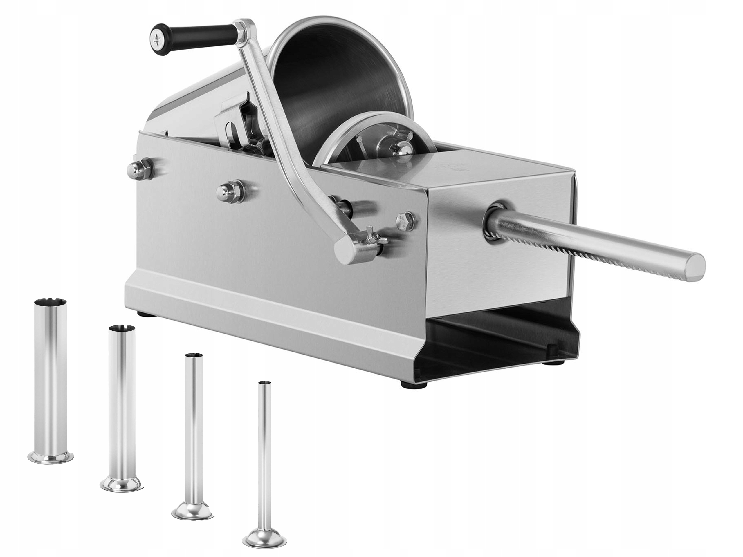 Насадка для ковбас Royal Catering - це професійний апарат, призначений для приготування ковбас, сосисок, сосисок та інших подібних продуктів. Добре працюватиме на невеликих м’ясокомбінатах, м’ясокомбінатах та в агротуристичних господарствах. Апарат має сертифікат СЕ та відповідає вимогам санепідемстанції.