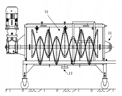 Горизонтальний стрічковий змішувач являє собою пристрій, що поставляється в комплекті з шнековим конвеєром і сервісною платформою.