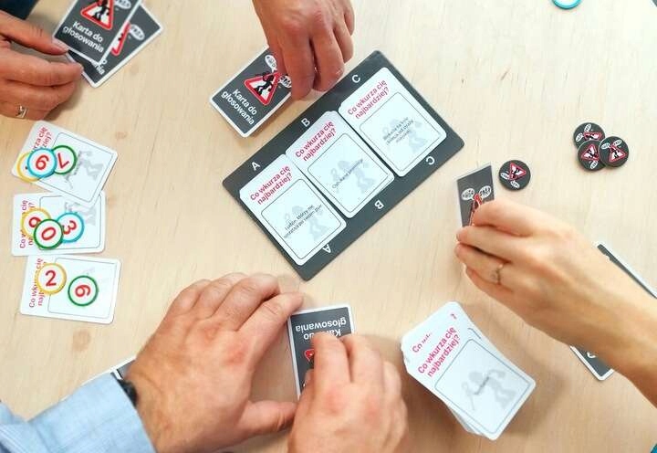 GROUCH — це надзвичайно проста та весела вечіркова гра. Витягніть із стопки 3 картки та прочитайте їх вголос. Тепер усі гравці таємно обирають, що їх найбільше дратує. Як ви думаєте, інші думають так само? Ставте багато на свою відповідь і вигравайте більше.