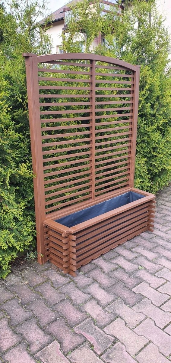 Вазони та перголи виготовлені з висушеної деревини сосни, деревина пофарбована водостійкими просоченнями. Ці горщики з’єднуються гвинтами, тому вони довговічні. Горщики загорнуті всередину, тому деревина не згниє і прослужить роками. Весь горщик і пергола зроблені з дерева. Ми є їх виробником, тому їх не можна придбати в іншому місці. Рекомендую для саду на балконі, тераса мабуть стане прикрасою будь-якого місця!!! Аукціон проводиться за один квітковий горщик і одну перголу.