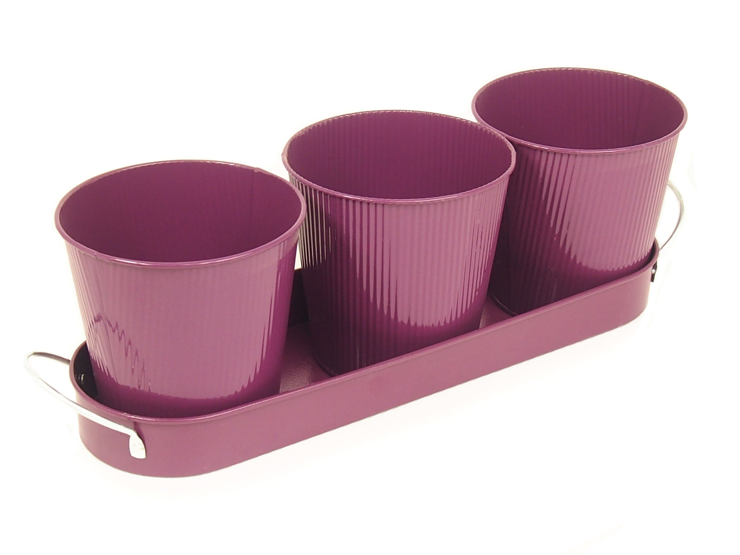Набір із 3 квіткових горщиків на підносі ягідного кольору