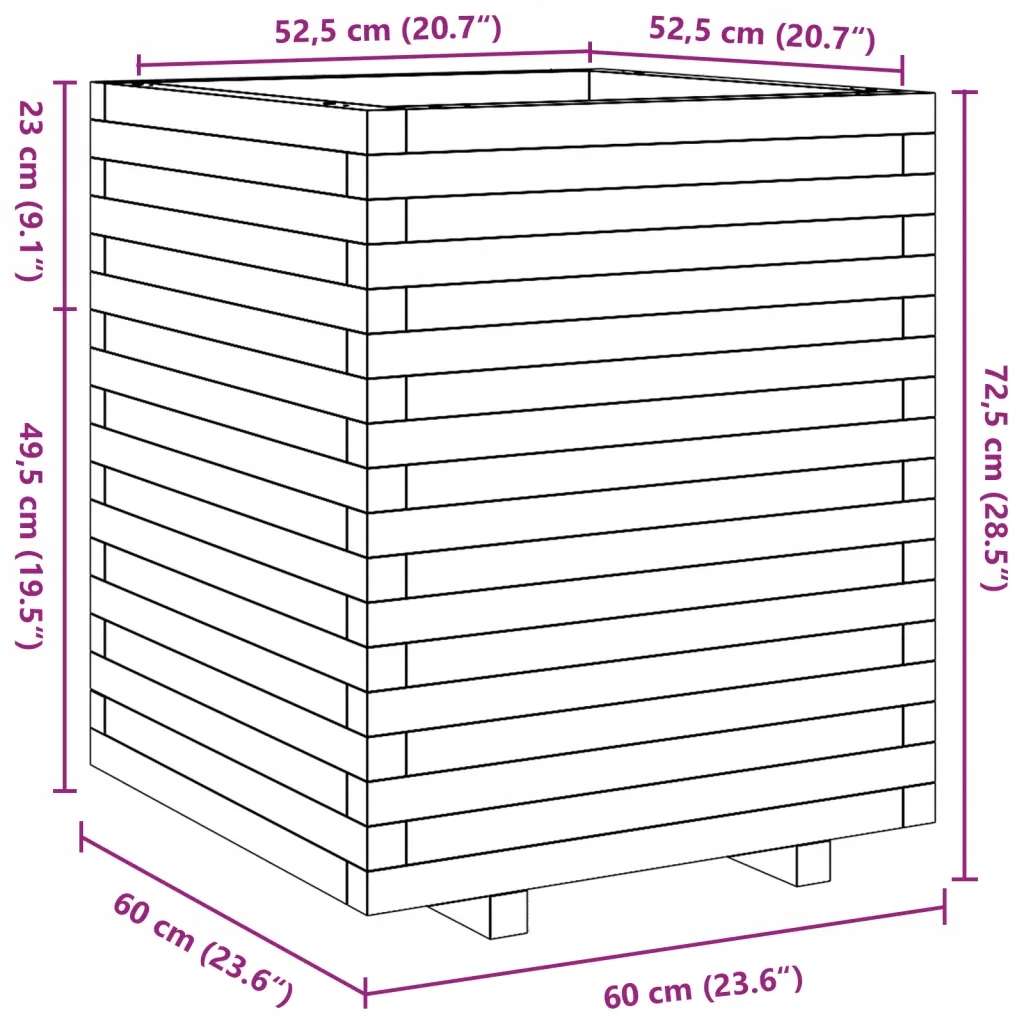 Горщик для квітів садовий, восково-коричневий, 60x60x72,5 см, сосна