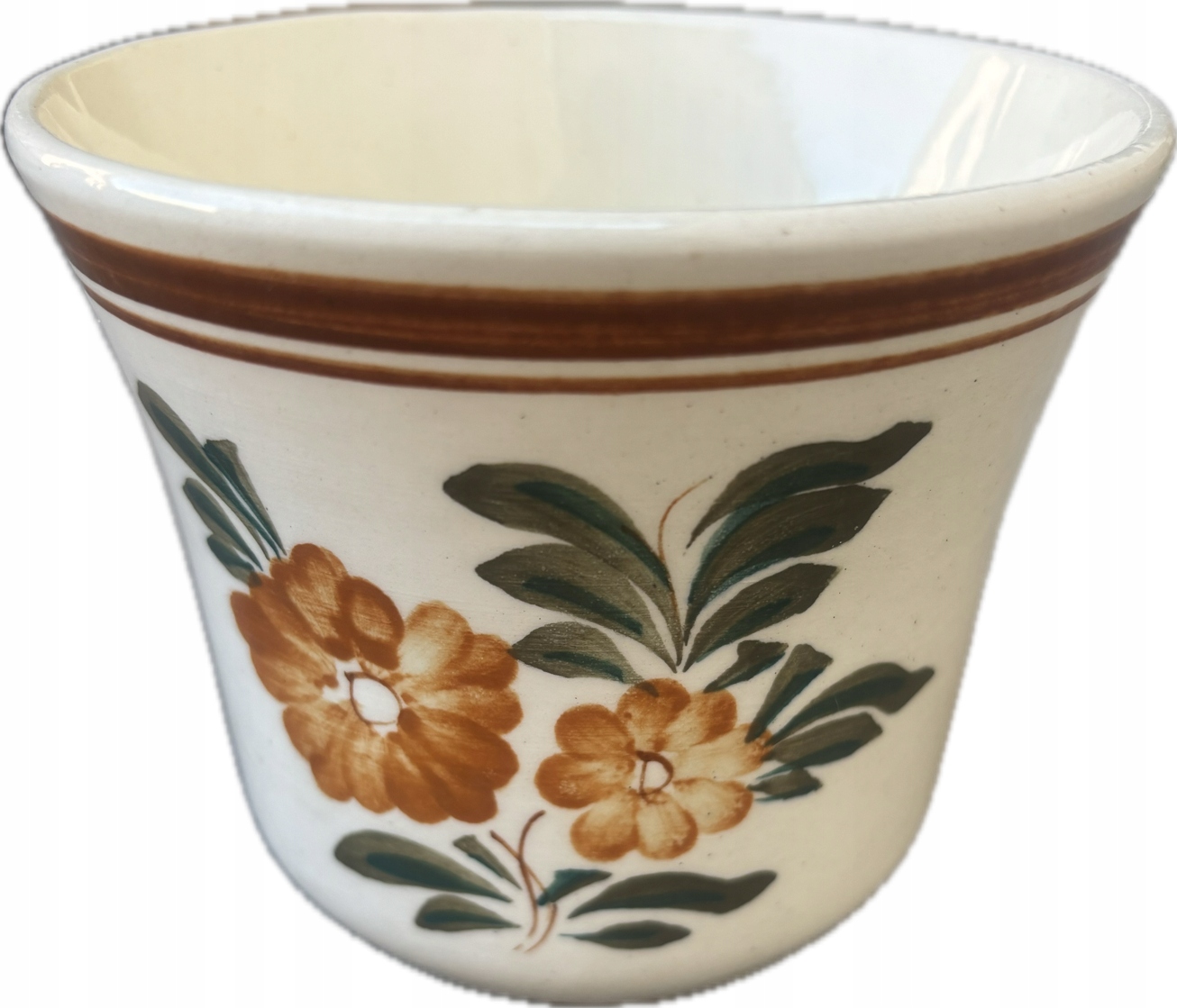 Fackery Pot з Włocławek з 70 -х та 80 -х років. Підписаний. Візерунок 1449 -записана місіс Анна Шевчик. Розміри; Висота 9 см х 10,5 см. Дуже хороший стан горщика, показаний на знімках.