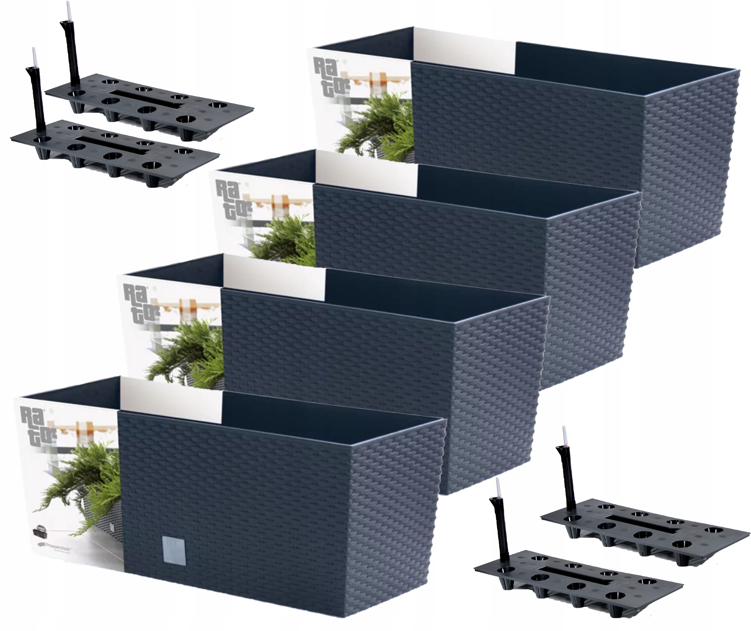 4X КВІТНИЙ ГОРЩИК FLOWER BOX RATAN PROSPERPLAST ANTHRACITE