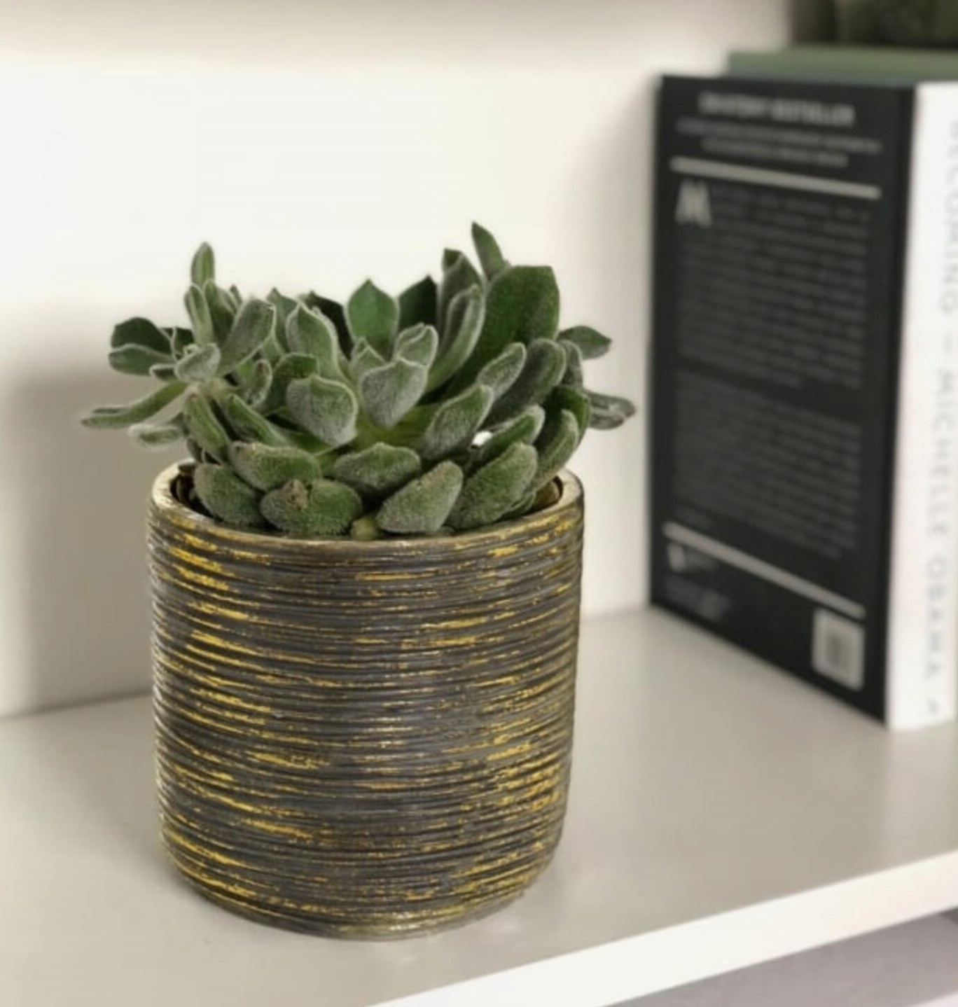- Керамічний горщик для квітів у сільському стилі стане ідеальним укриттям для сукулентів і живих зелених рослин.