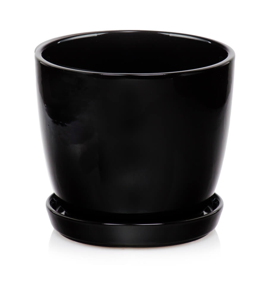Поєднання простоти та елегантності - чорний керамічний горщик для квітів із клеєною (інтегрованою) підставкою
