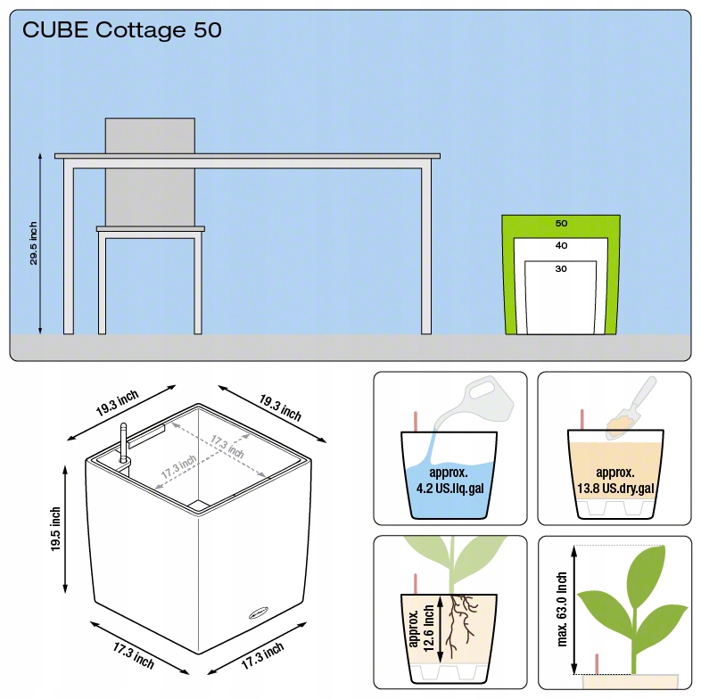Квітковий горщик Cube Cottage виготовлено з високоякісної первинної сировини - масово пофарбованого поліпропілену та екструдованого у форму зі структурою традиційного техноротанга. Завдяки змінній вставці зміна розташування рослини не складає особливих проблем - її можна легко пересадити в інший горщик із серій Cube Cottage, Cubico Premium 50, Cubico Color 50 і Cubico Cottage 50. Оригінальна та унікальна форма горщика дозволить відповідати очікуванням найвибагливіших клієнтів.