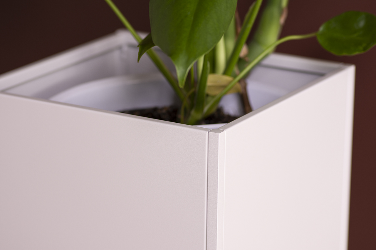 Для фарбування ми використовуємо найякіснішу порошкову фарбу: фасадну поліефірну стійку до стирання та УФ-променів. Білий структурний колір чудово поєднується з сучасним інтер’єром у стилі лофт, індустріальному або скандинавському, надаючи йому елегантності та неповторного характеру. Структура фарби допомагає підтримувати квітковий горщик в ідеальній чистоті, оскільки пальці не залишають на ньому слідів.