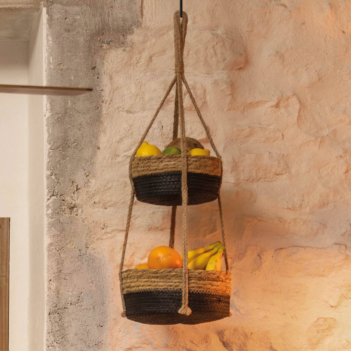 Підвісні горщики з джуту та очерету від Atmosphera відрізняються двома рівнями та чорними акцентами. Такий дизайн чудово підкреслить зелень рослин. Виріб відмінно підійде в інтер'єрах, оформлених в сучасному, скандинавському або класичному стилі. Варто зазначити, що горщики виготовлені з джуту, який стійкий до сильного сонячного світла.
