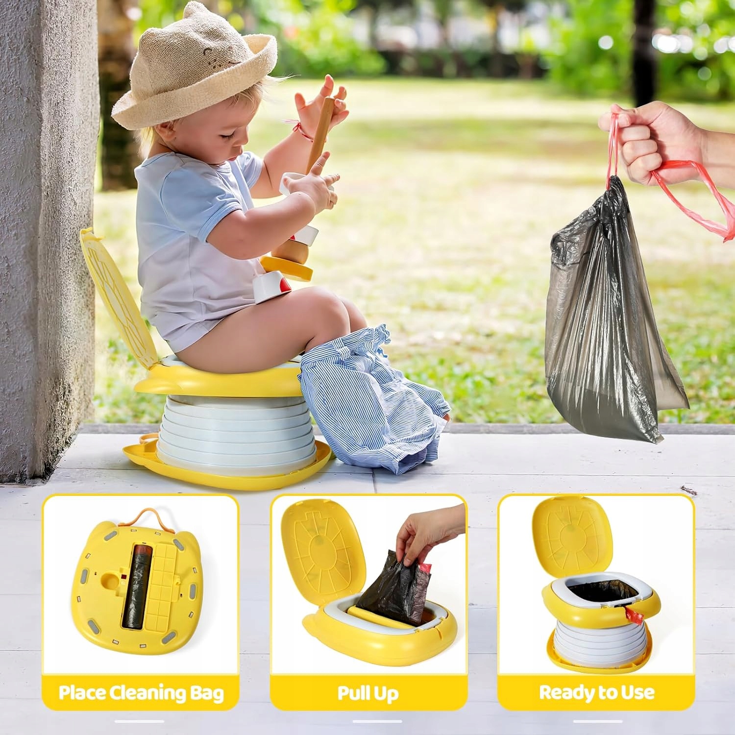 Простий у використанні: швидко відкривається за лічені секунди та зберігається в доданій сумці, яку можна брати з собою куди завгодно, що робить її дуже зручною для щоденних подорожей. Поставляється з 45 одноразовими пакетами для горщиків на шнурках у 3 рулонах, що позбавляє від клопоту мити горщик і робить його дуже гігієнічним і чистим.