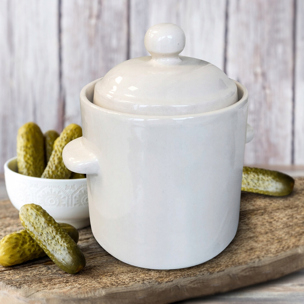 Горщик з маринованою капустою огірки 1,8 л бежевого бежевого кольору