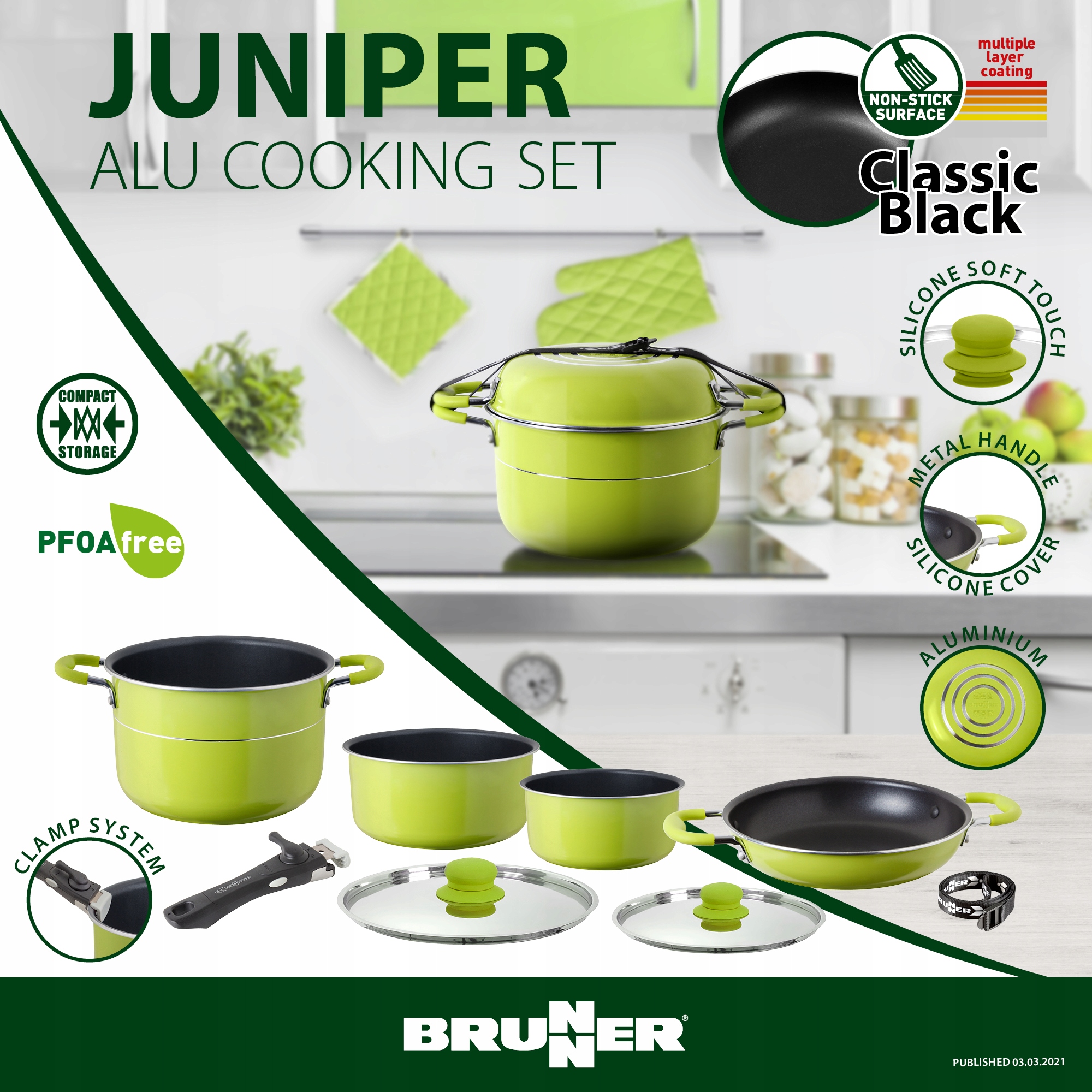 Виріб вирізняється сучасним дизайном у поєднанні з найвищою якістю виконання. Він задовольнить вимоги навіть найвимогливіших клієнтів. Завдяки інноваційному дизайну набір горщиків ідеально підходить для маленьких кухонь, трейлерів і яхт. Надзвичайно мала вага і невеликі розміри в складеному вигляді економлять місце в шафах і дозволяють брати горщики в рюкзаку в похід, на пікнік або на присадибну ділянку. Їх також можна використовувати в домашньому господарстві.
