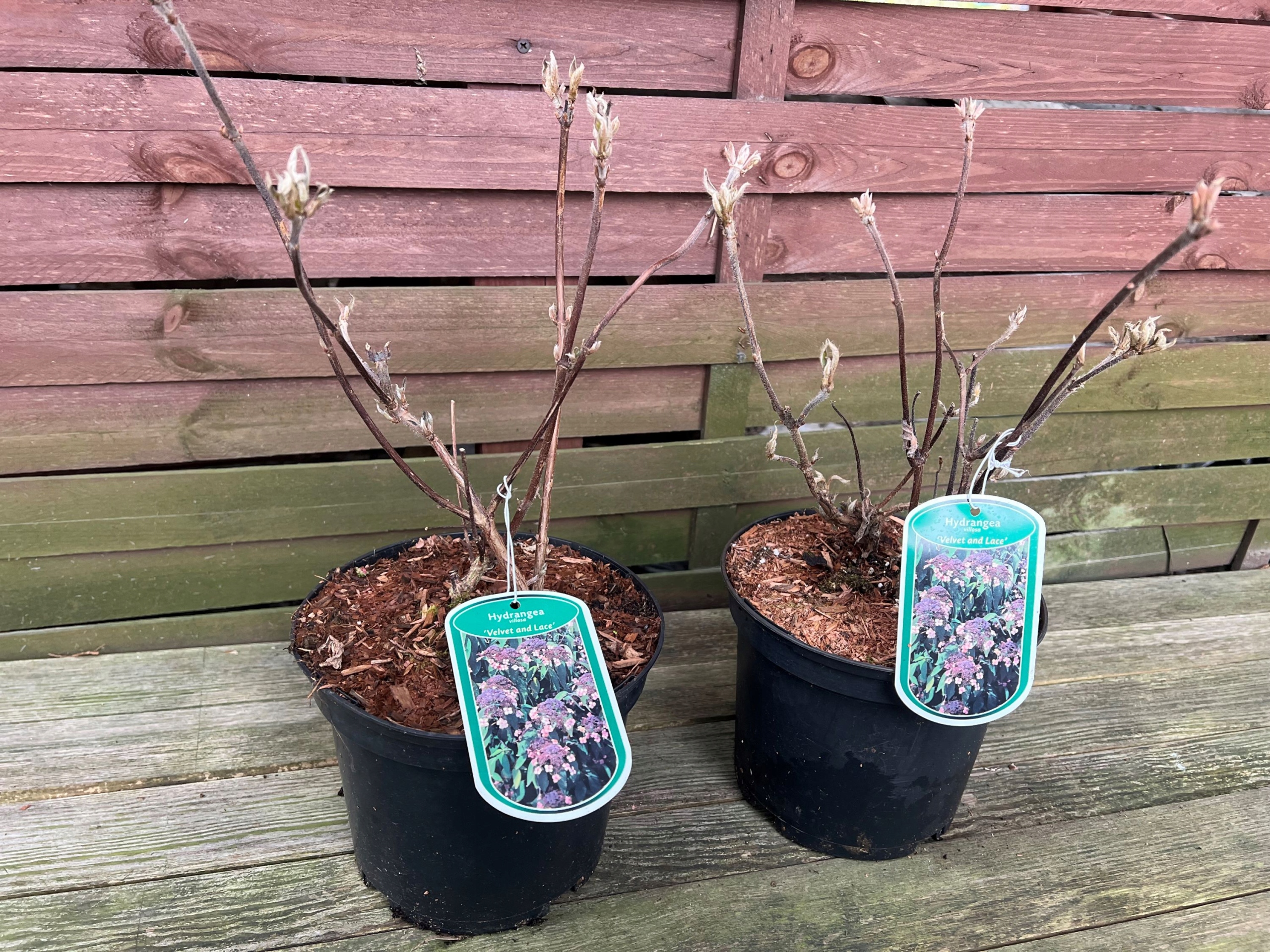 Оксамитове мереживо (або "оксамитовий і мереживо") - прекрасна гортензія з грубими листям і привабливими квітами. Вони складаються з сплющених навісів і складаються як з родючих, так і з стерильних квітів. Родючі квіти посередині темно -фіолетові, а на зовнішньому кільці стерильні мають світло -фіолетові пелюстки. Вони виходять на початку серпня і цвітуть два місяці.
