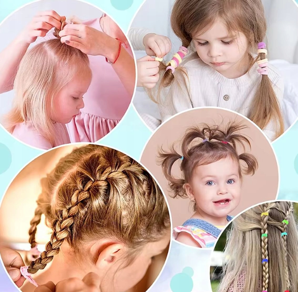 Чарівний набір гумок для волосся, який містить аж 70 різнокольорових гумок для волосся різних форм!