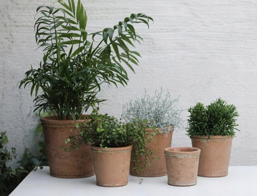 Квітковий горщик із сільського цементу теракотового кольору та натуральної землі. Декоративні прикраси по верхньому краю кришки і в основі стануть приємним акцентом в будь-якій кімнаті або саду. Цей невеликий горщик також підійде не лише як горщик для квітів чи зелених рослин, але й для таких трав, як базилік, м’ята чи коріандр.