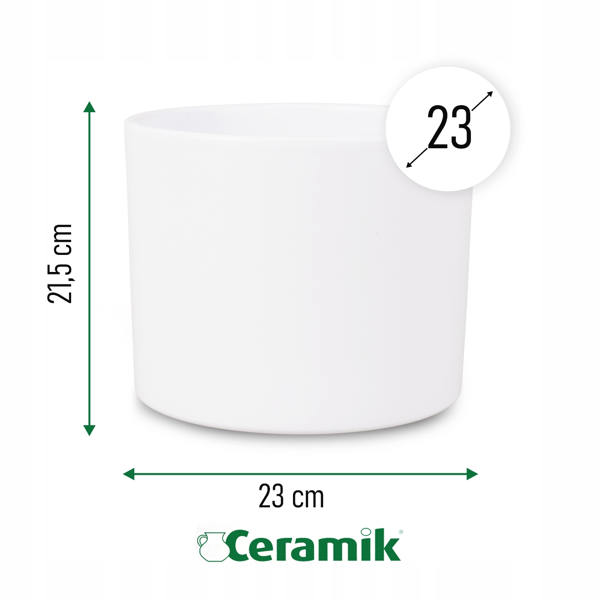 - Діаметром 23 см він ідеально вписується в будь-який дизайн інтер'єру, як просторої вітальні, так і більшої офіси. Керамічний квітковий горщик водонепроникний і виготовлений у Польщі з високоякісної кераміки, що є ідеальним вибором для любителів міцних та естетичних рішень.
