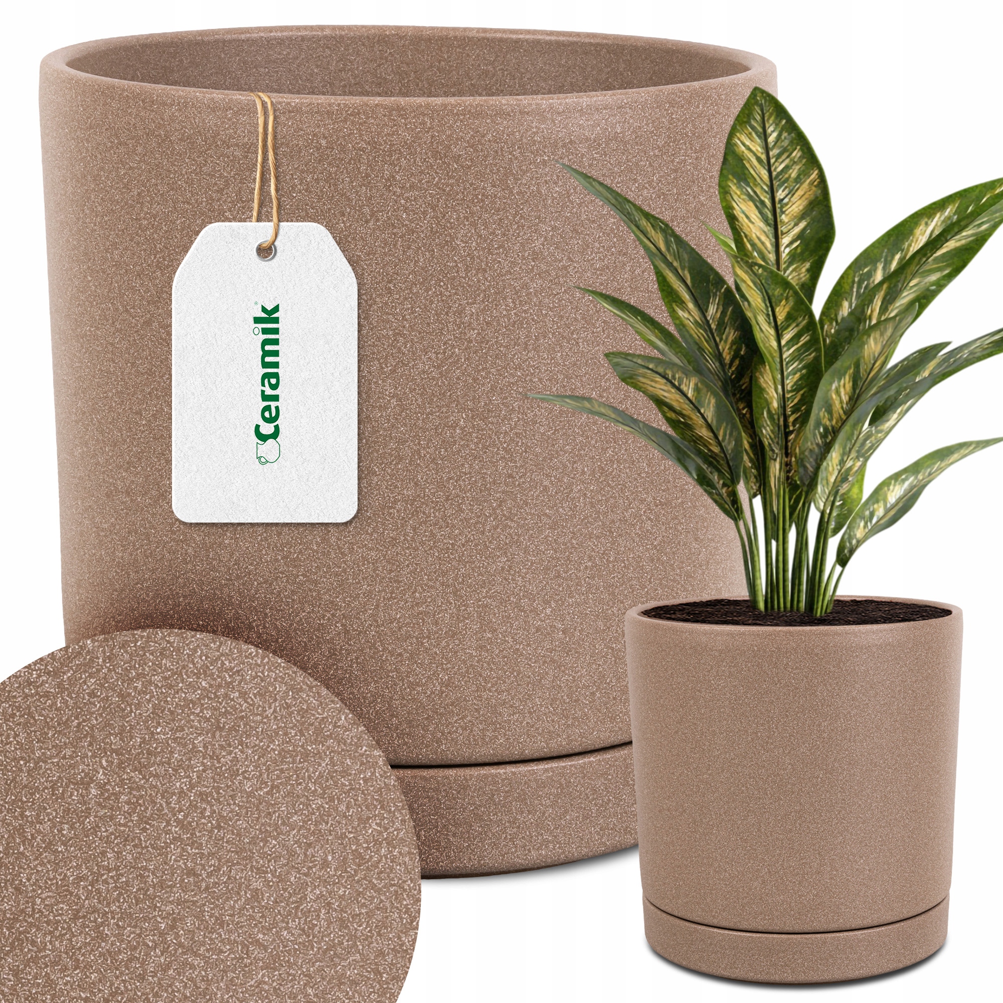 - Ми особливо рекомендуємо цю модель для любителів невеликих і середніх рослин, таких як сукуленти, маранта, диффенбахія, аглаонема або калатея в багатьох сортах. Їх різноманітні форми та кольори ідеально контрастують із матовою поверхнею горщика з кварцу, створюючи привабливу внутрішню прикрасу.